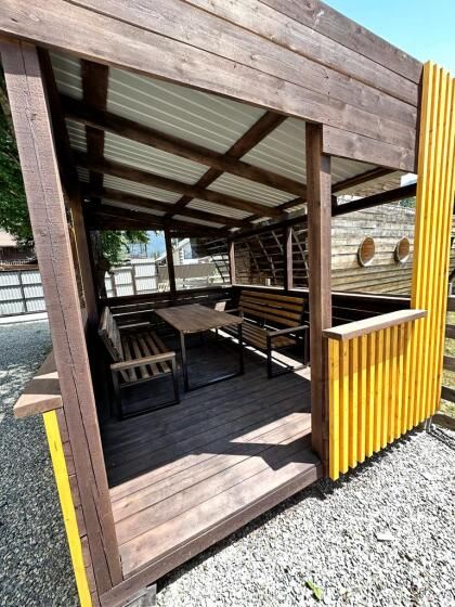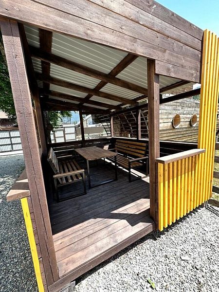 На территории обустроена закрытая парковка для путешествующих на автомобиле. Также имеются меблированные беседки и мангальная зона.