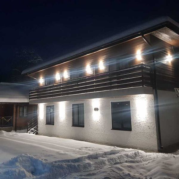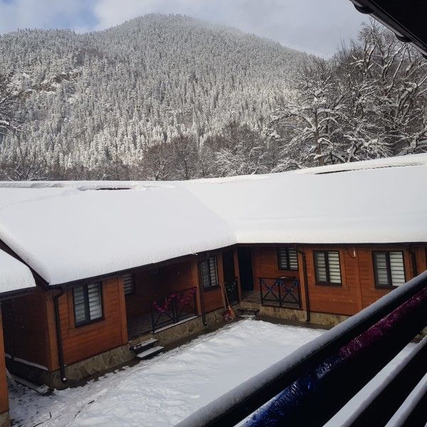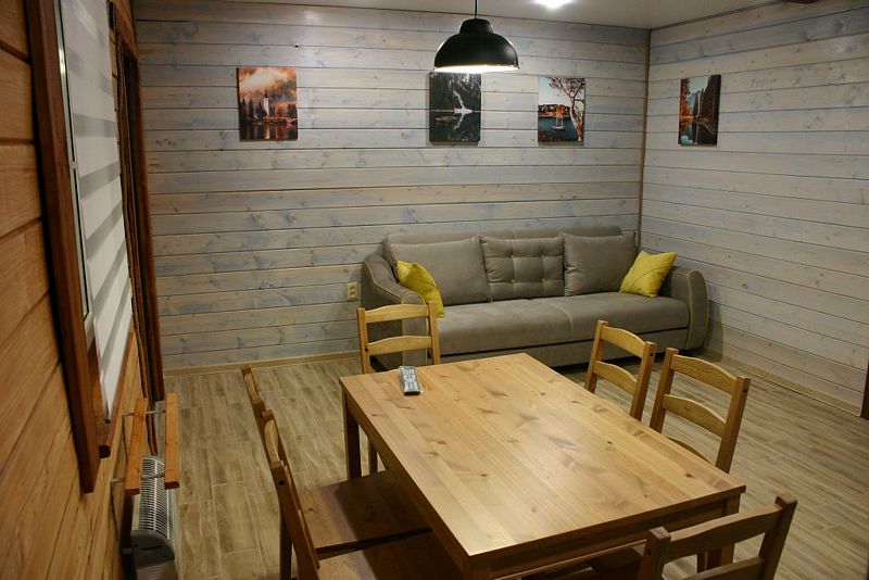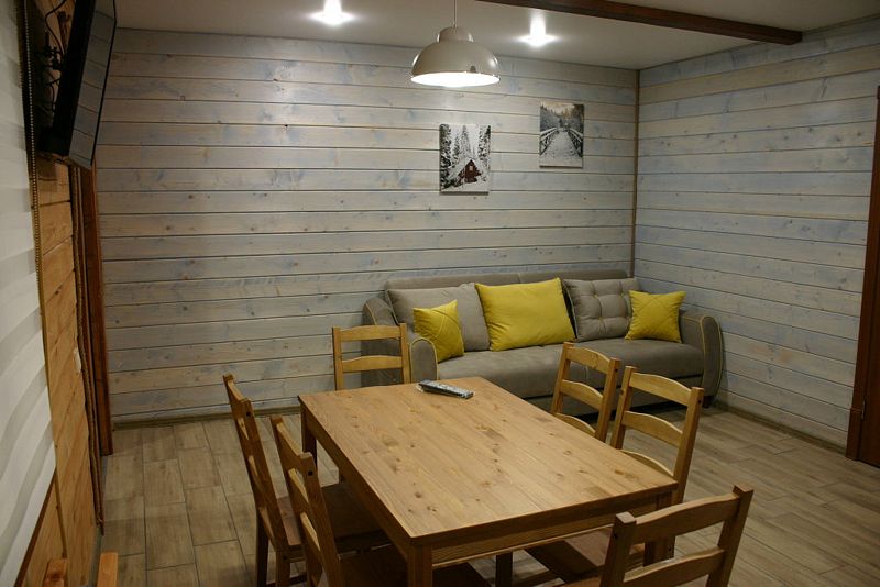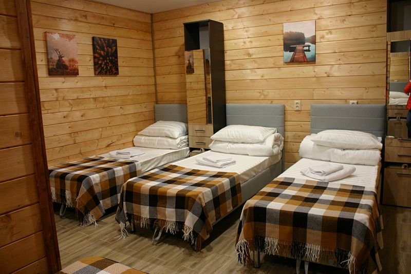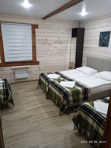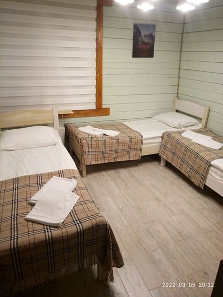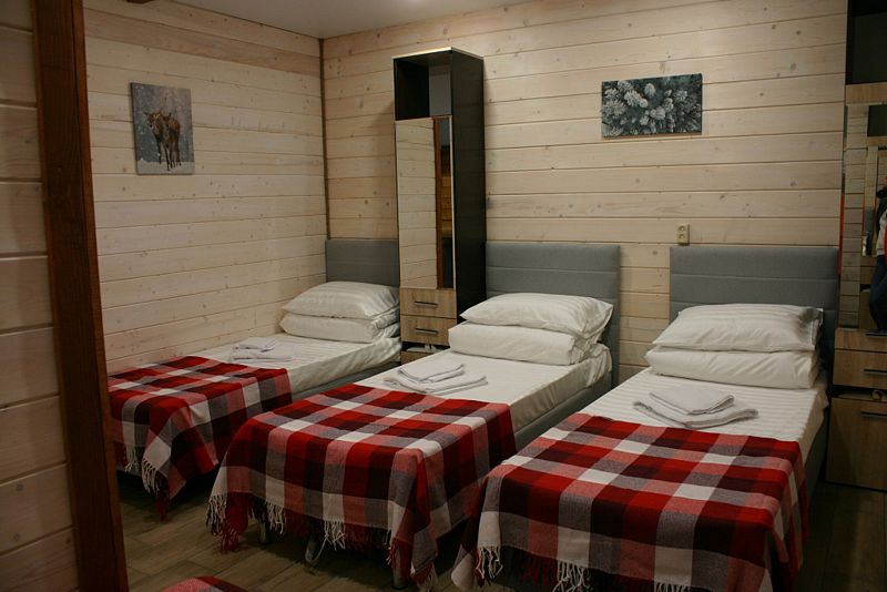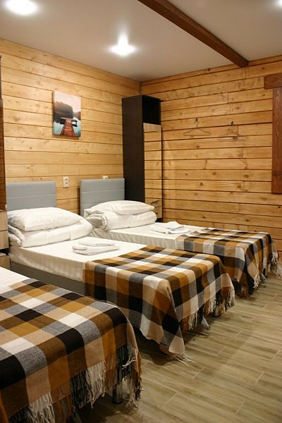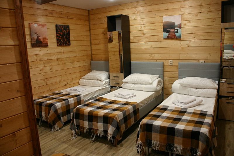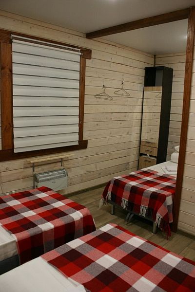 Здесь предлагаю недорогие номера различной вместимости и уютные шале, а также баню на дровах и прокат в шаговой доступности. Для удобства гостей специально оборудовано помещение для сушки обуви.