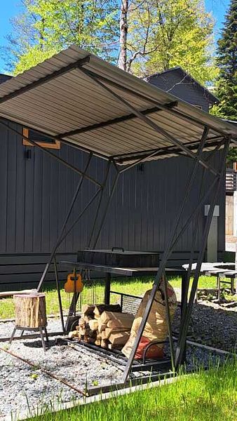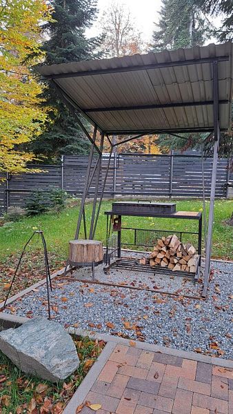 Это железная купель, расположенная прямо на улице. Вода в ней нагревается с помощью очага под чаном. Подходит для отдыха на природе даже в морозы, вода всегда нагревается до комфортной температуры.