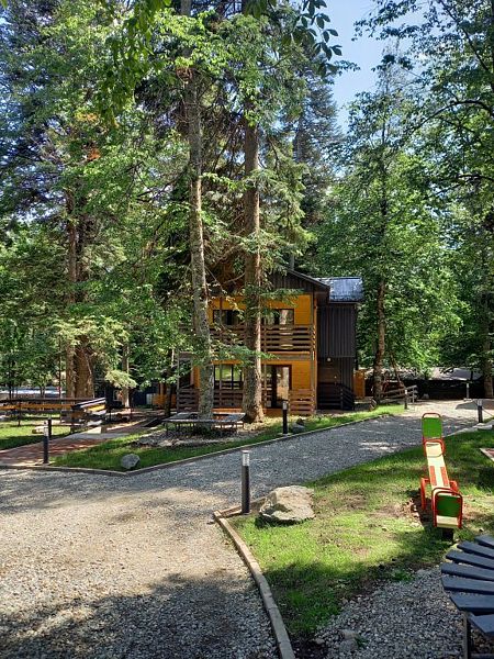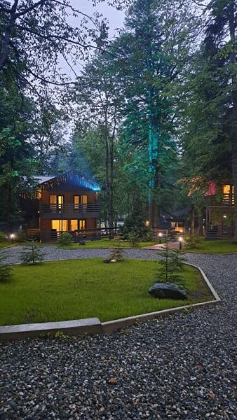 База отдыха «Arkhyz Family Club» расположена в курортном селе Архыз, среди красивого леса и возвышающихся гор.