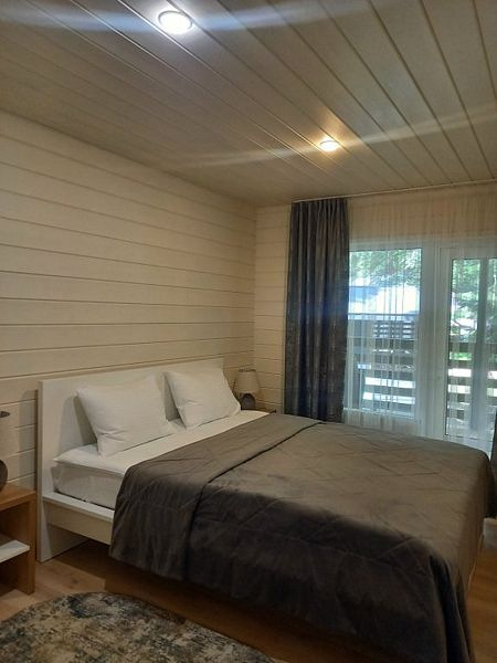 Двухместный коттедж с красивым видом из окна двуспальная кровать