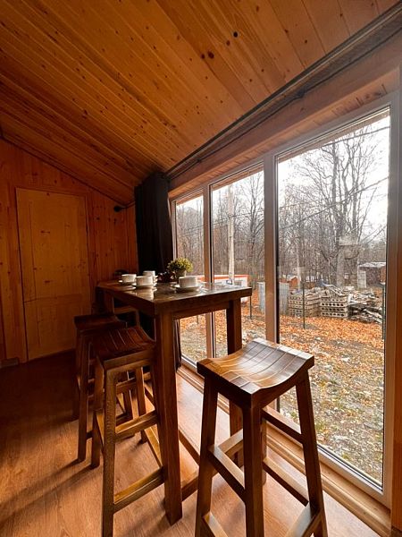 На территории Шале работает Wi-Fi и оборудована площадка для барбекю, а внутри домиков предусмотрено всё отдыха.