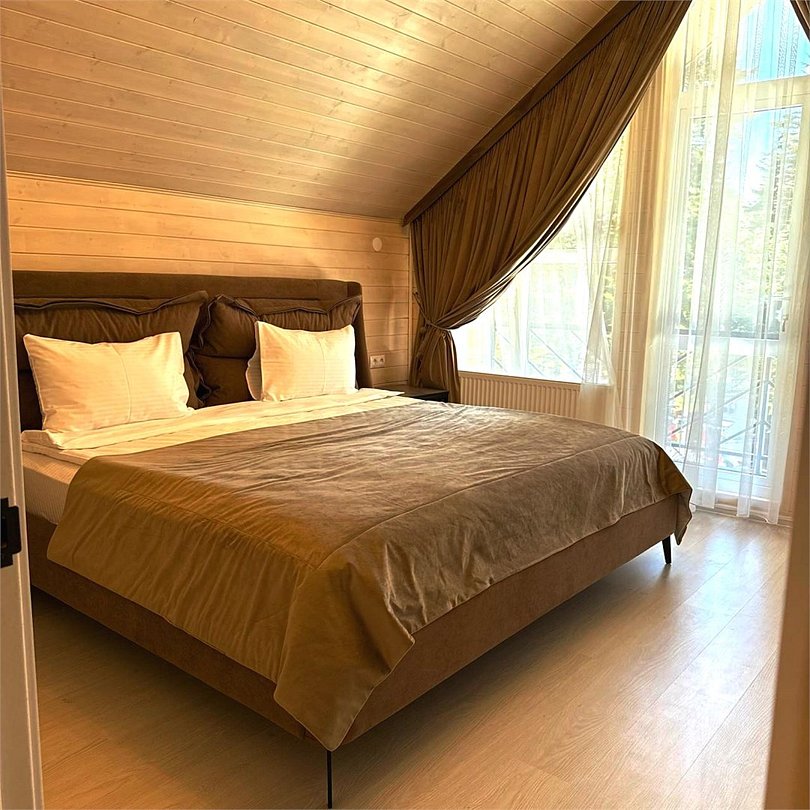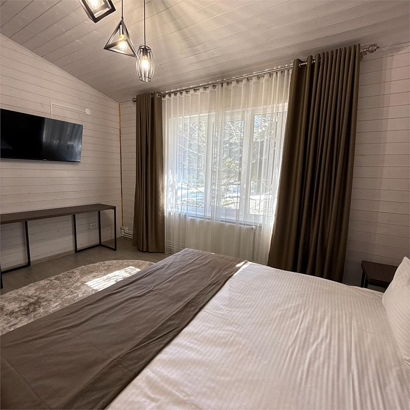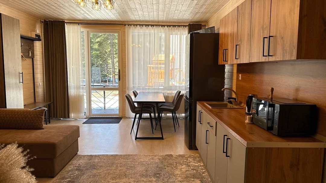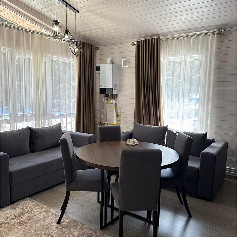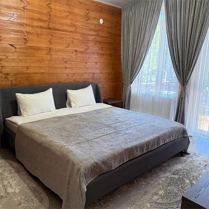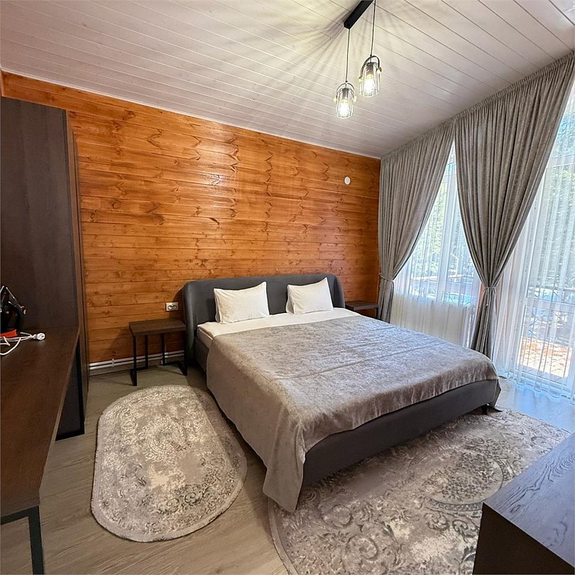 Villa Forest — это просторная двухэтажная вилла, окружённая соснами и горными пейзажами, где каждый элемент создан для вашего расслабления. Вместимость и планировка: До 5 гостей (идеально для семьи или компании друзей). 2 отдельные спальни с качественными матрасами и постельным бельём. Гостиная с мягкими диванами и зоной отдыха. Мини-кухня с холодильником, микроволновой печью и базовой посудой. Современный санузел с душем и набором банных принадлежностей. Удобства: ✔ Бесплатный Wi-Fi ✔ Телевизор с цифровыми каналами ✔ Индивидуальные наборы гостя (шампунь, гель, мыло) ✔ Мягкие халаты и тапочки ✔ Терраса с мебелью для отдыха ✔ Вид на горы и лес Атмосфера: Просыпайтесь под пение птиц, завтракайте на террасе под кронами деревьев и наслаждайтесь чистым горным воздухом. Villa Forest сочетает уединённость дикой природы с преимуществами цивилизации — здесь есть всё для комфортного отдыха после прогулок по Архызу.Услуги и удобства