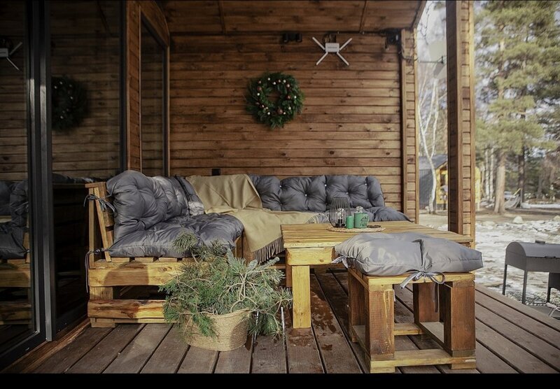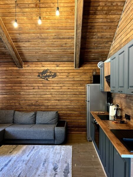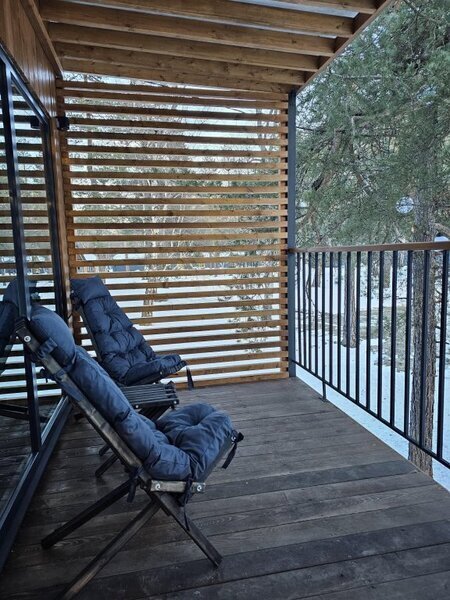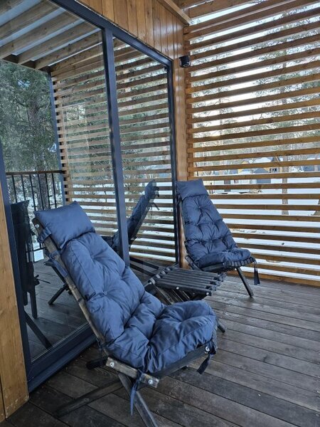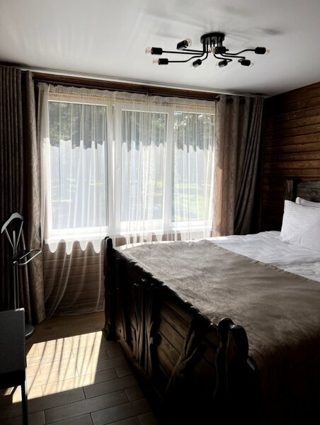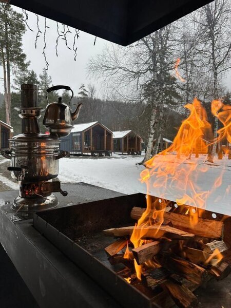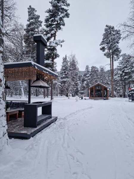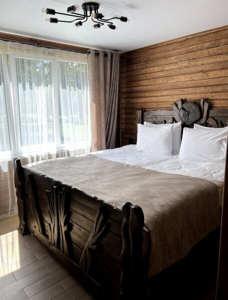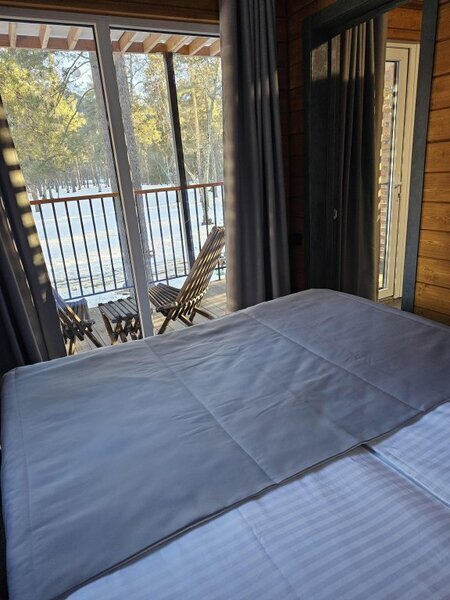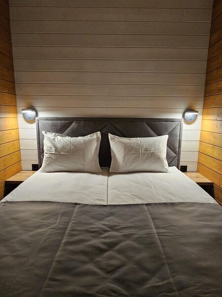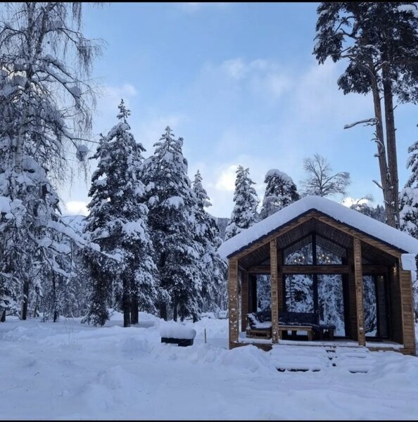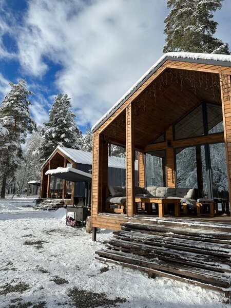 Для размещения доступны три «Шале» и два двухэтажных домика с номерами класса «Люкс». Каждый из вариантов проживания оснащён всеми необходимыми для комфортного отдыха удобствами. Из панорамных окон вы сможете любоваться лесом, который по-своему прекрасен в каждом из времён года.