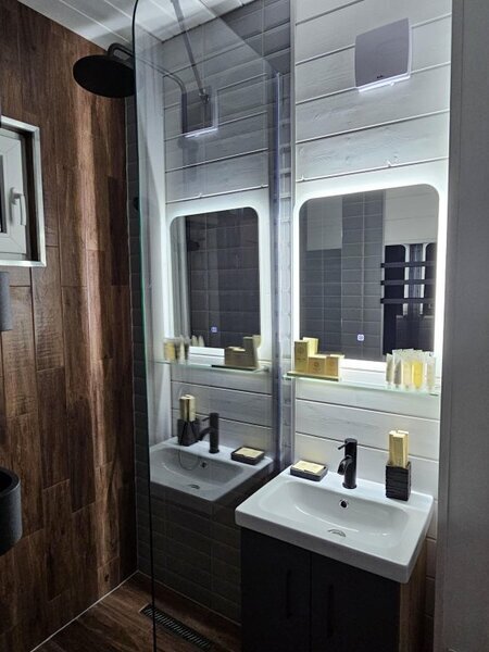В каждом номере: ортопедические матрасы для комфортного сна, фен, косметические принадлежности, теплый пол в ванной комнате, чайник, необходимая посуда, утюг, гладильная доска, Smart-TV.