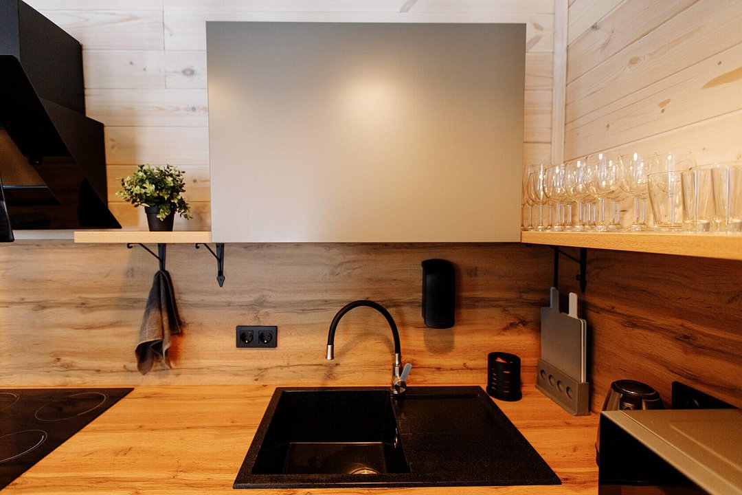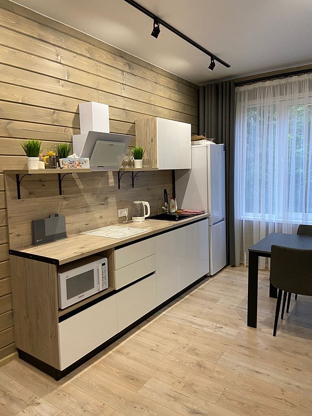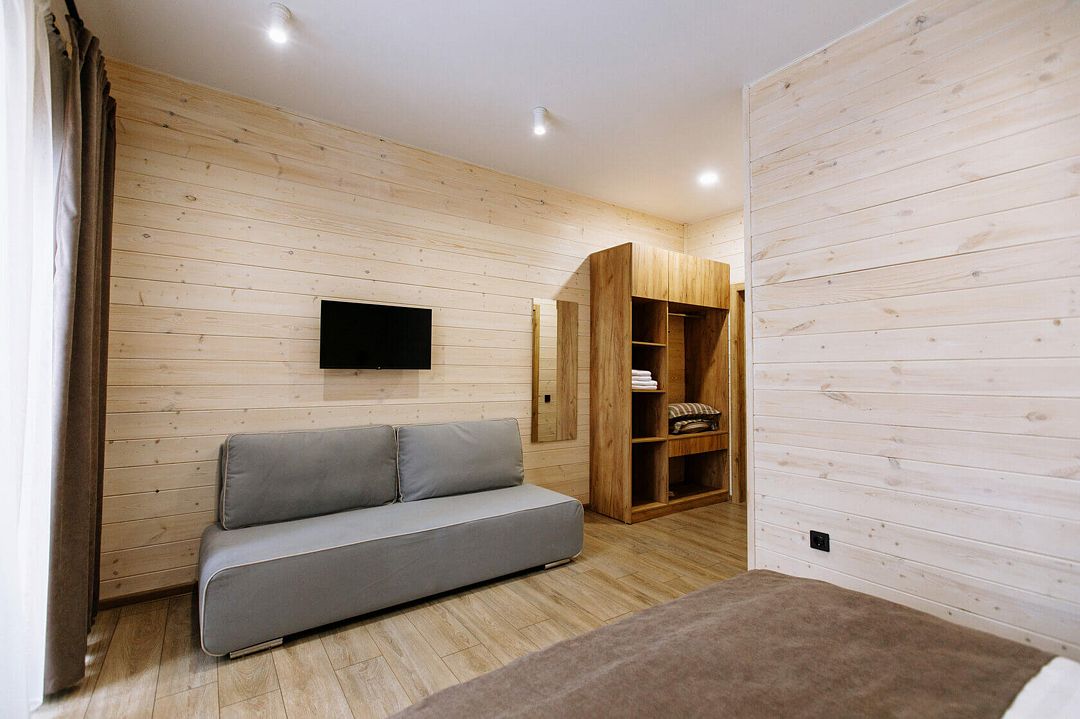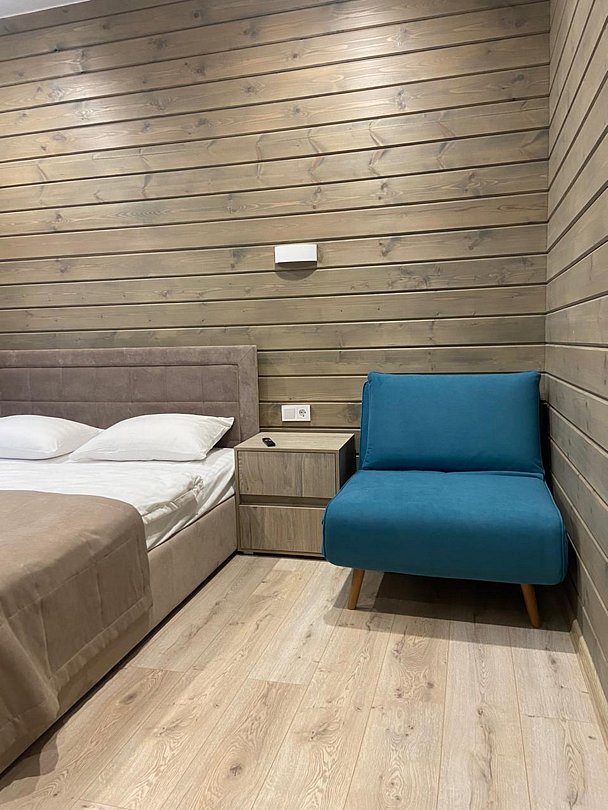 Двухкомнатный коттедж, рассчитанный на проживание до шести человек. В коттедже имеется кухня со всей необходимой посудой и техникой для приготовления пищи.
