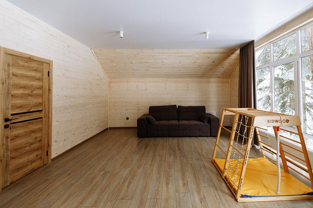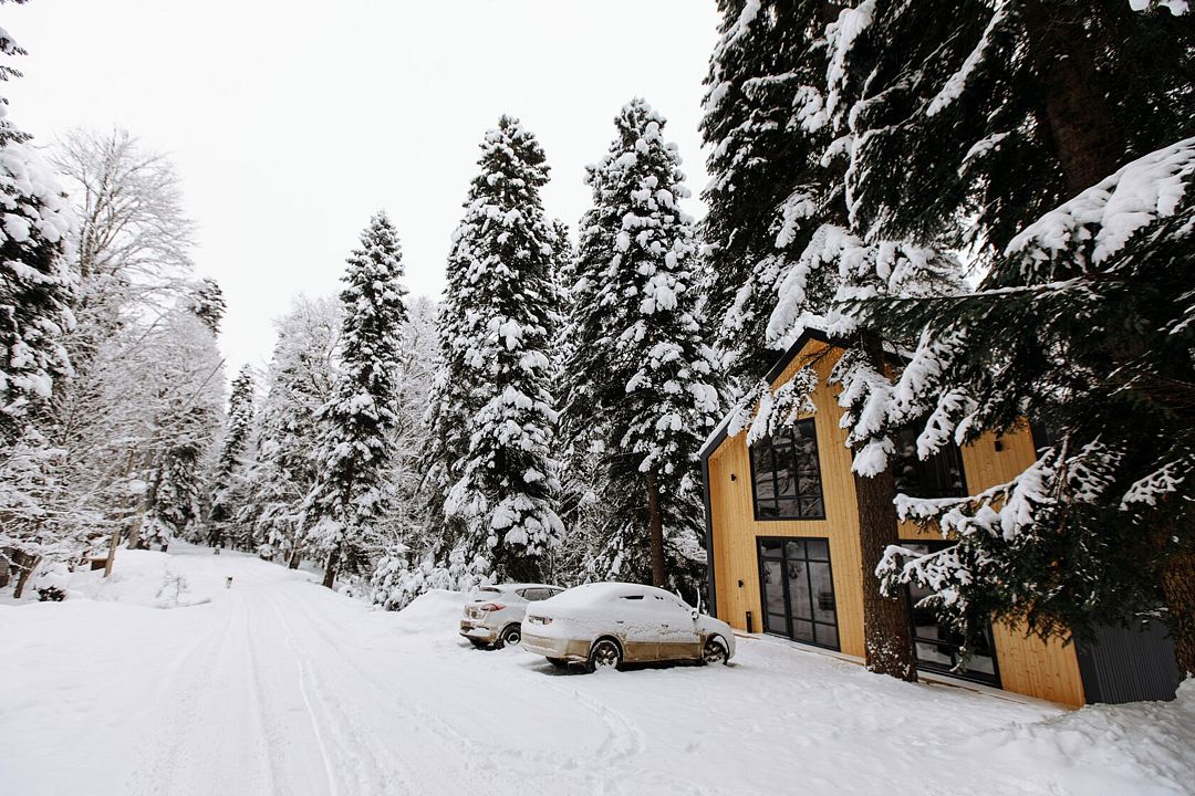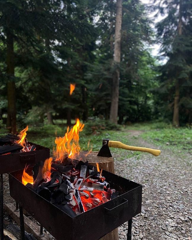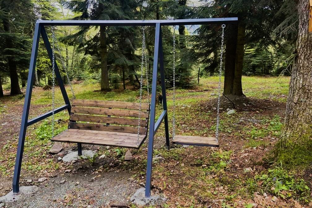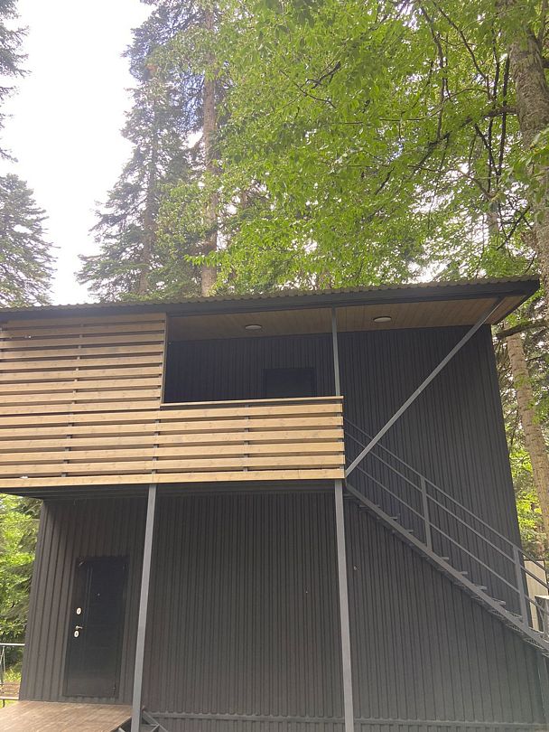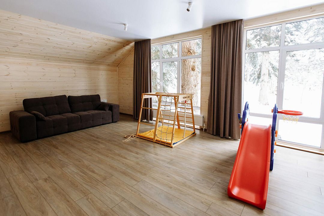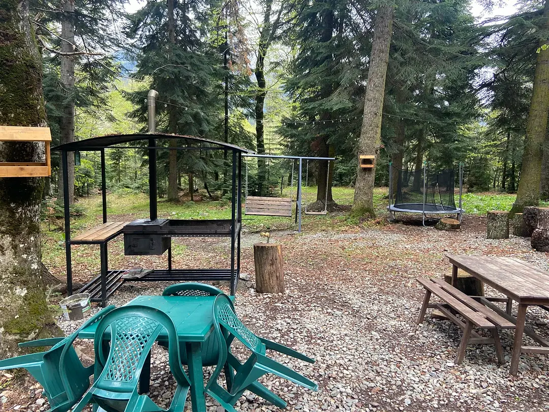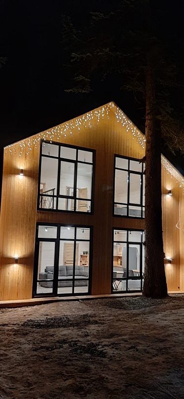 На территории комплекса раскинулась уютная беседка с мангалом, где можно устроить вечер барбекю под звездным небом. Для детей предусмотрены качели и батут, добавляющие нотку игривости в семейный отдых. Лес, окружающий коттеджи, дарит возможность уединиться с природой, наслаждаясь свежим воздухом и живописными видами.