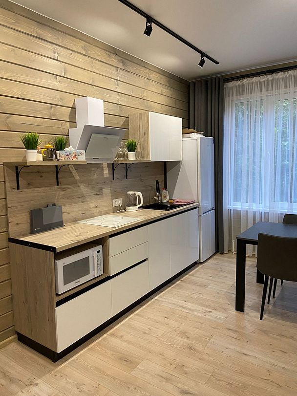 В коттедже имеется кухня со всей необходимой техникой и посудой для приготовления пищи. В комнатах имеются санузлы и туалетные принадлежности.