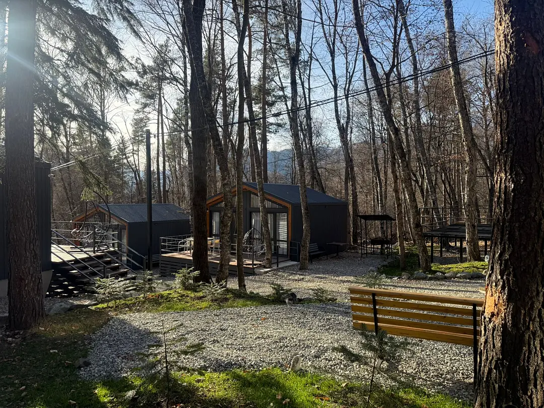 База отдыха «Шёпот леса» находится в живописной лесной местности недалеко от главной трассы Архыза. Гостей ждут уютные современные дома с полностью оборудованными кухнями. К каждому дому примыкает собственная меблированная терраса, с которой открывается прекрасный вид на горы и лес.
