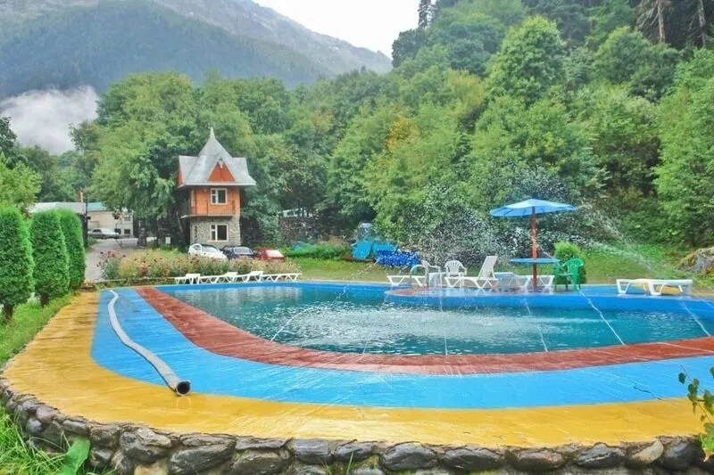 Отельный комплекс, расположенный на левом берегу реки Аманауз в 150 метрах от подъемников, включает в себя три трехэтажных жилых корпуса. Отель предлагает гостям блочные номера с общим санузлом, двухместные номера Стандарт, двухкомнатные Люксы и номера повышенной комфортности. Все номера оборудованы удобной мебелью, телевизором, холодильником, в номерах улучшенных категорий имеется дополнительная бытовая техника.
