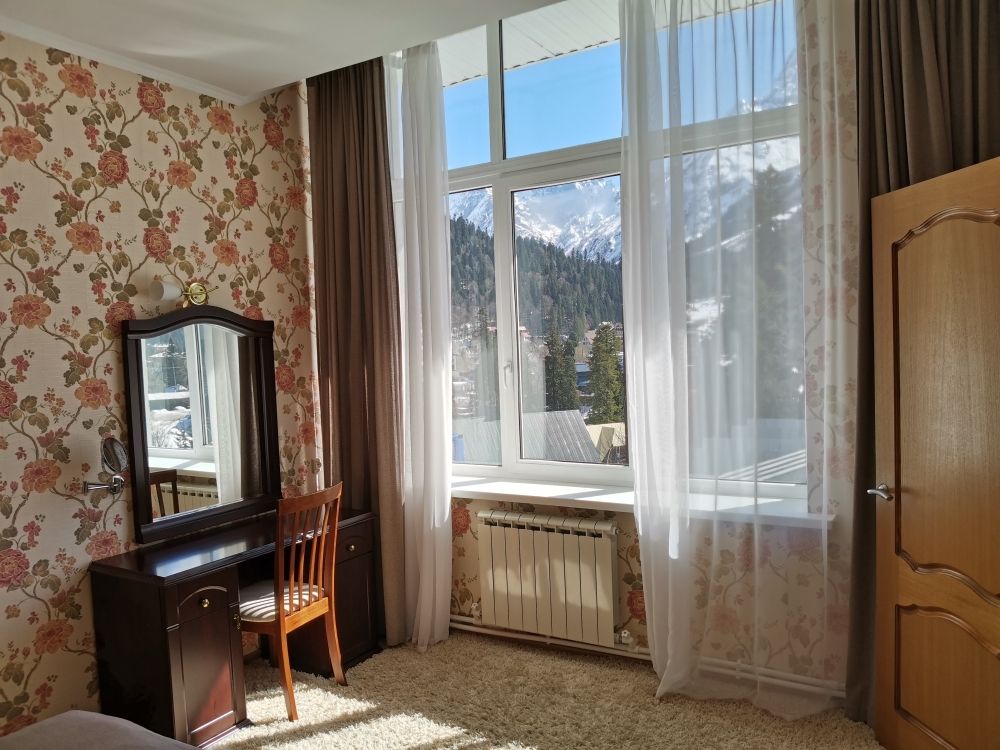 Путешествие в одиночкуСупер во всем.Первый раз в Домбае. Ехал по путёвке. Гостиница супер: расположение, территория, сервис, само здание, номер, персонал. Люди очень отзывчивые, помогут с любым вопросом по месту. Отличный завтрак в виде шведского стола. Со мной случился несчастный случай, не у них конечно. Так они передали мне в больницу и сладости и фрукты, воду, полотенце и даже туалетную бумагу. Реально был в шоке, конечно в положительном, когда получил это. Очень им признателен. Очень рекомендую данную гостиницу.
