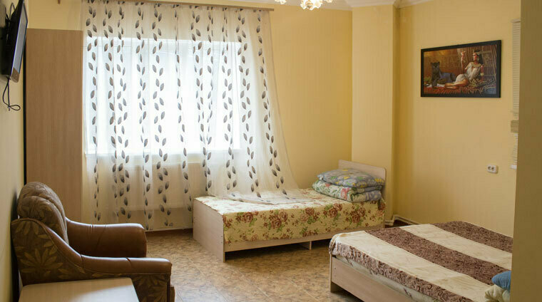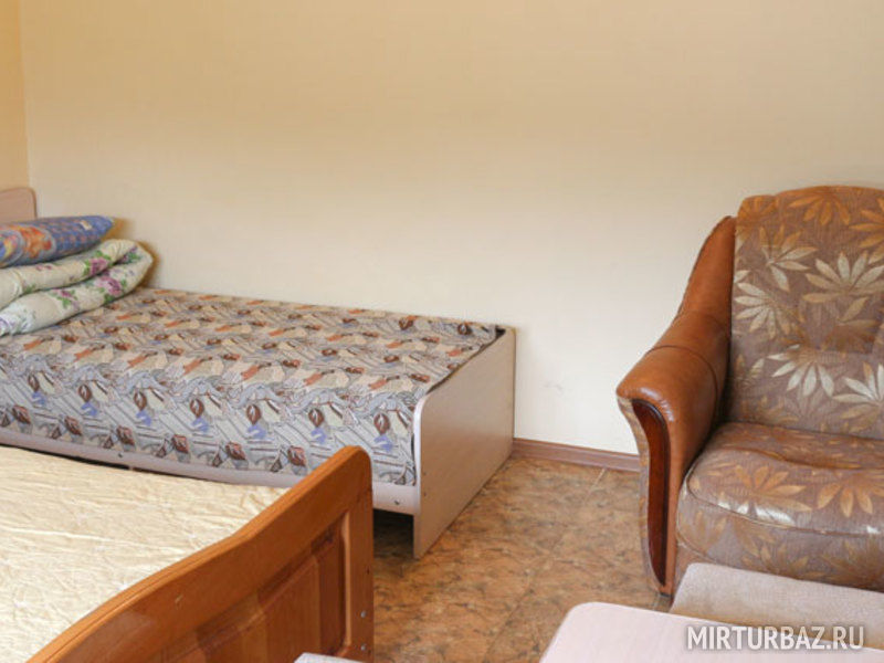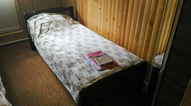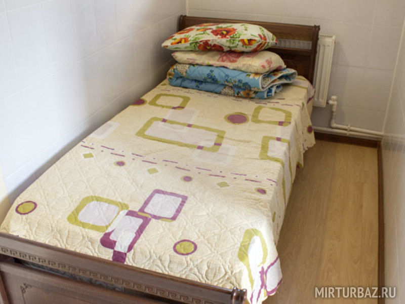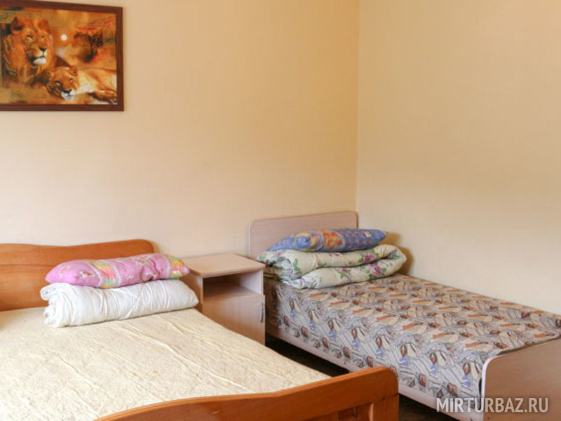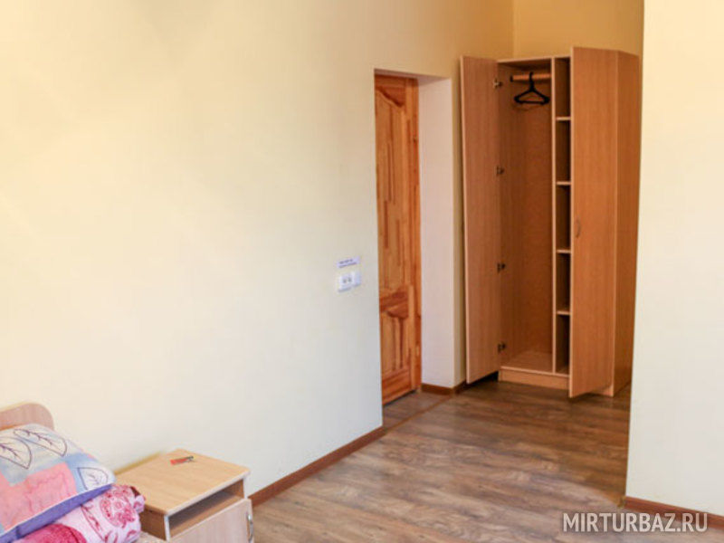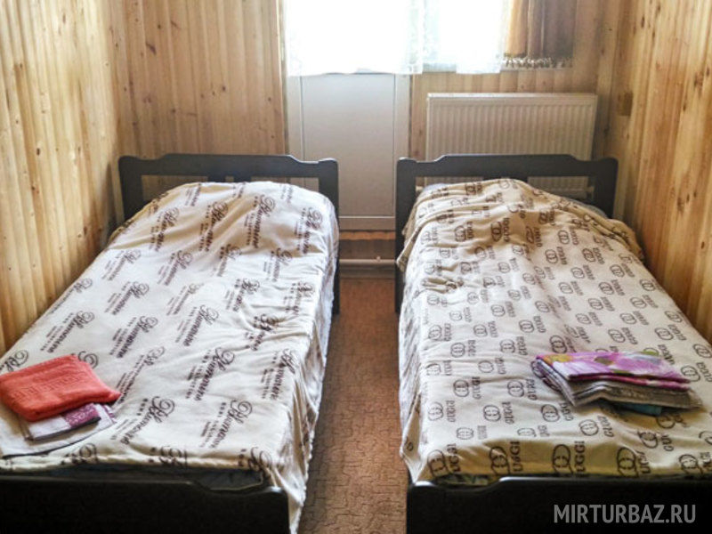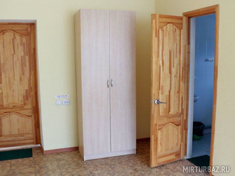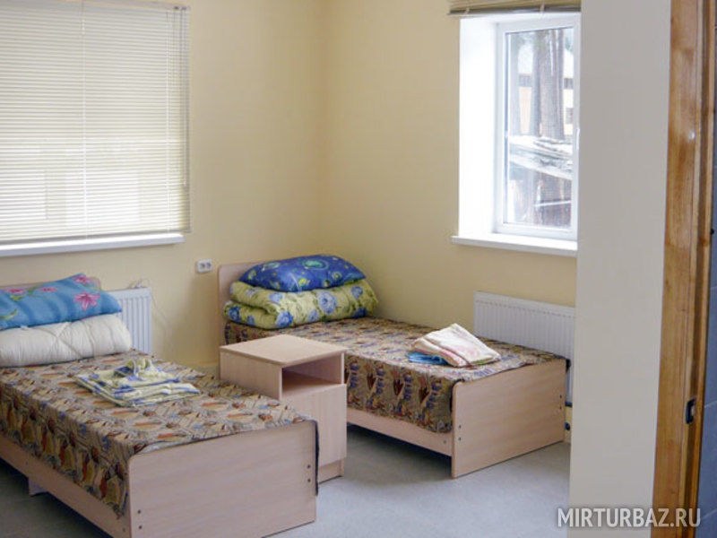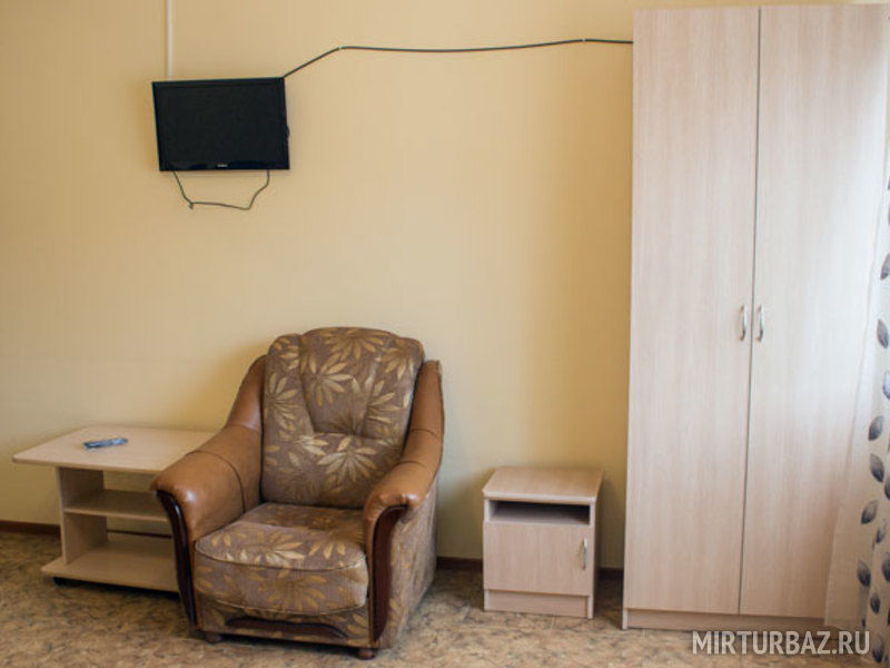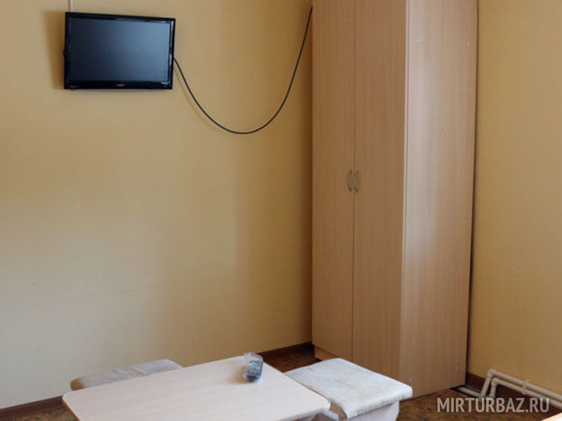 В номере: балкон, две раздельные кровати, прикроватная тумбочка, два платяных шкафа. Ванная комната на этаже: душевая кабина, раковина для умывания, туалет. Телевизор установлен в общем холле на этаже.