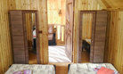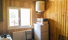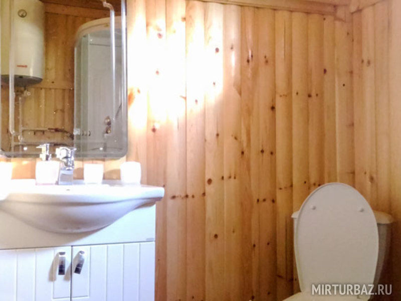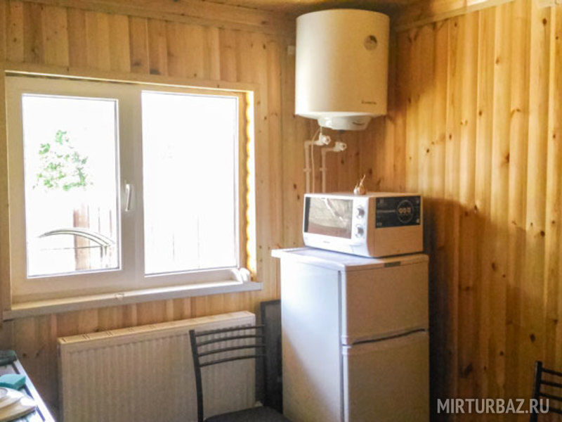 Ванная комната с душевой кабиной на каждом этаже коттеджа. Комнаты второго этажа оснащены балконом. На 1 этаже находится общая кухня, оснащенная холодильником, микроволновой печью, водонагревателем, электрической печкой, электрочайником, необходимой посудой, навесными шкафами, стульями и обеденным столом.