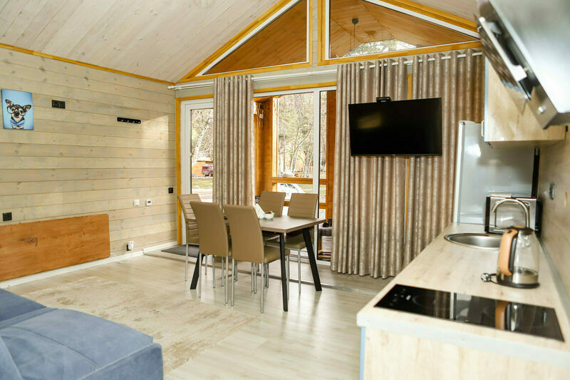 -телевизор, индивидуальный Wi-Fi у каждого домика;