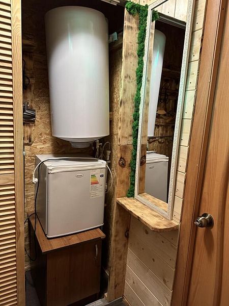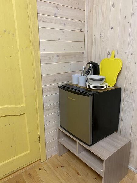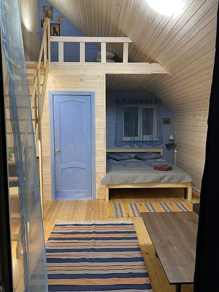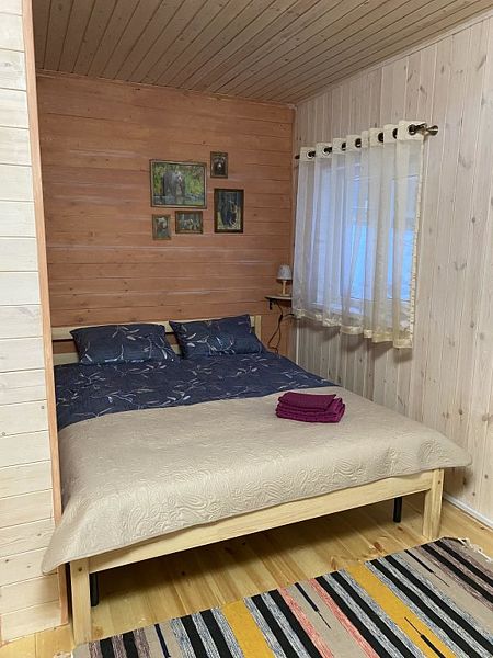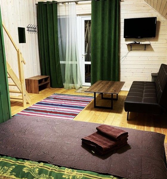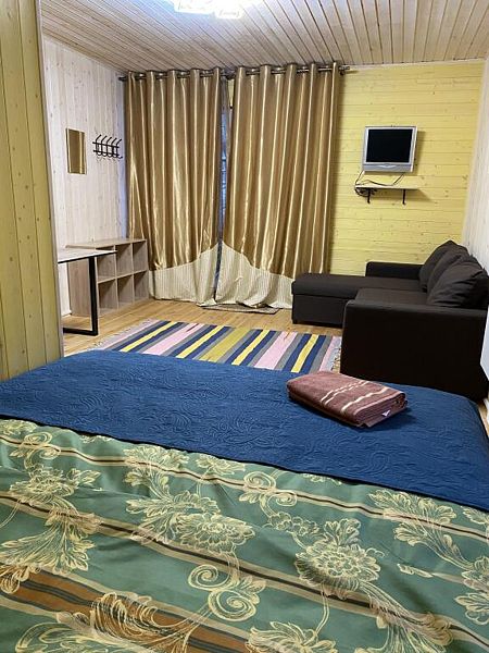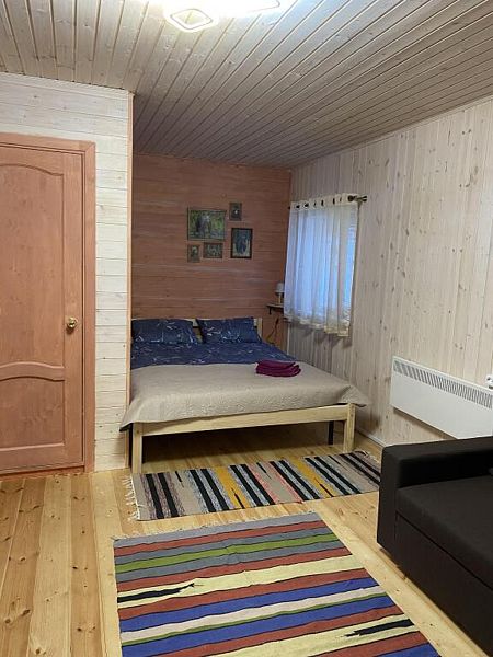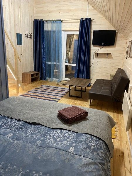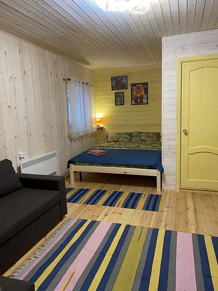 В номере двуспальная кровать, большой раскладной диван, телевизор, небольшой холодильник, электрочайник. Постельное белье и полотенца для лица предоставляются. Банные полотенца по запросу. Санузел: душ, туалет, горячая вода бойлер 100л. Отопление электрическое.