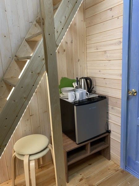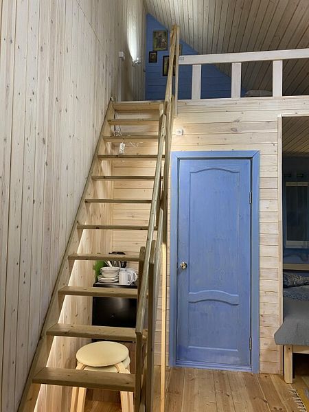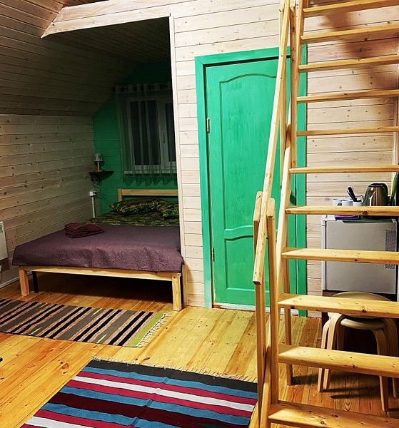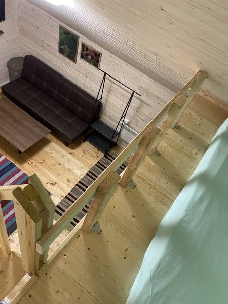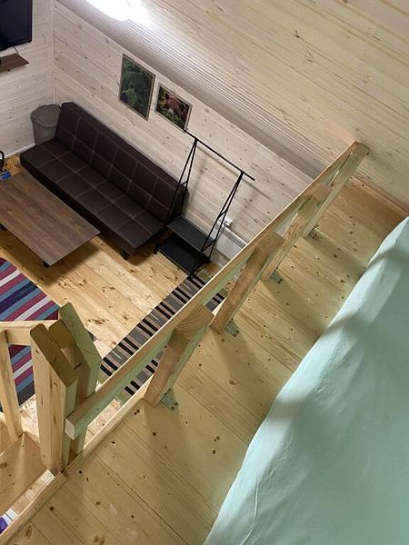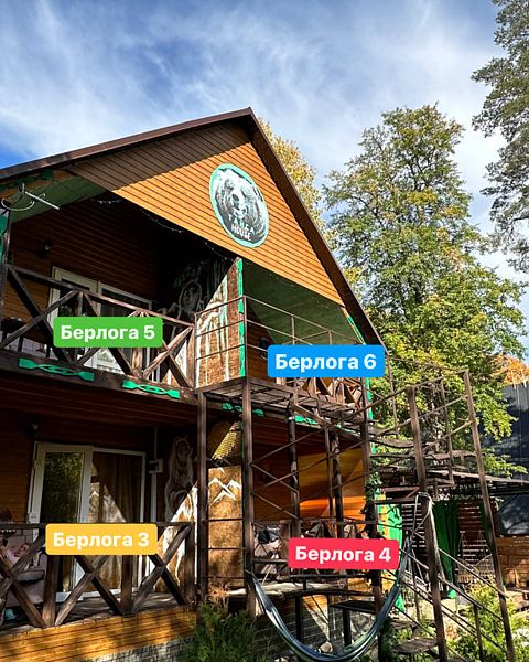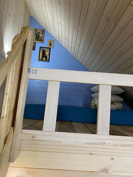 Номера категории «Стандарт +» (Берлога 5 или Берлога 6 ) Располагаются на 2 этаже двухэтажного дома. У номера отдельный вход, своя собственная веранда с диваном и столиком.
