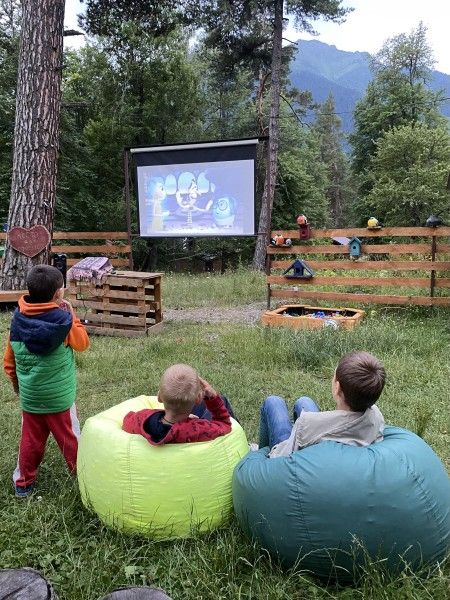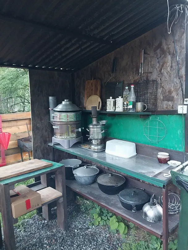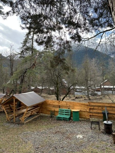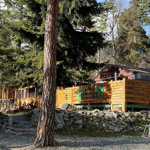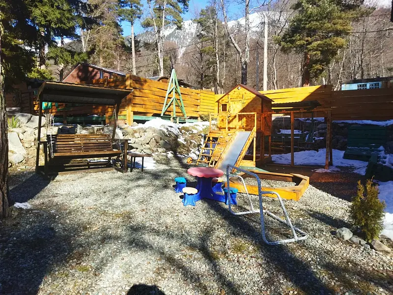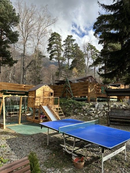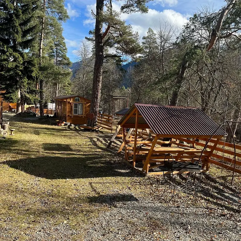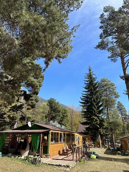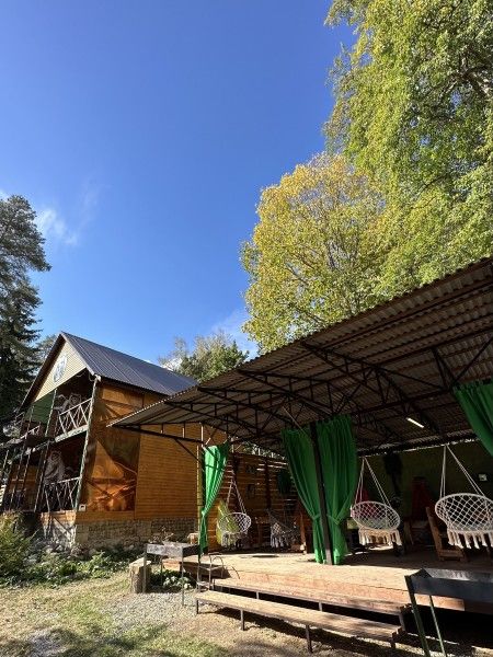 Среди удобств на территории оборудованная общая кухня, беседки, парковка, баня, Wi-Fi и зоны отдыха.