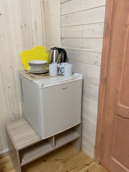 Номера категории «Стандарт» (Берлога 3 или Берлога 4 ) Располагаются на 1 этаже двухэтажного дома. У номера отдельный вход, своя собственная веранда с диваном и столиком.