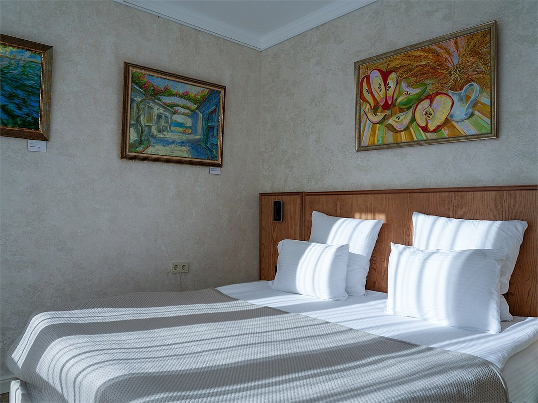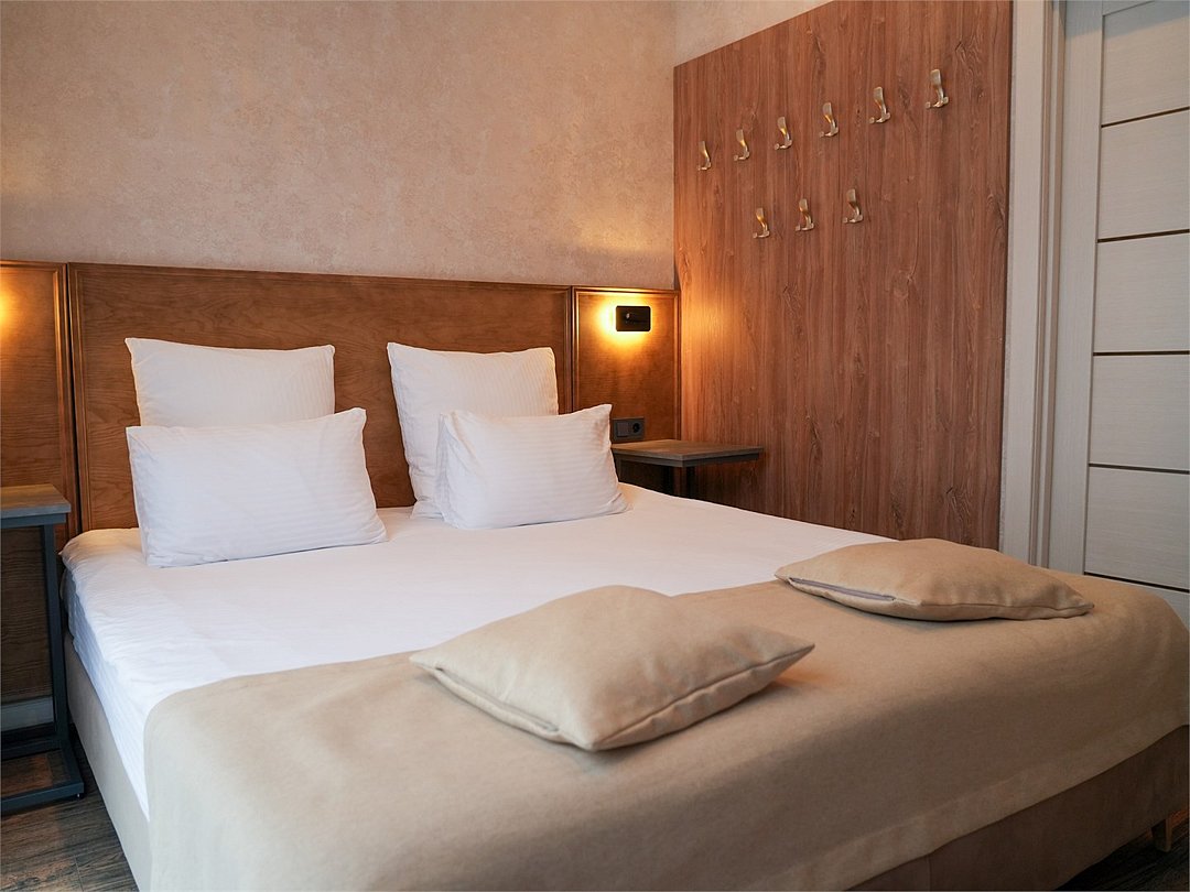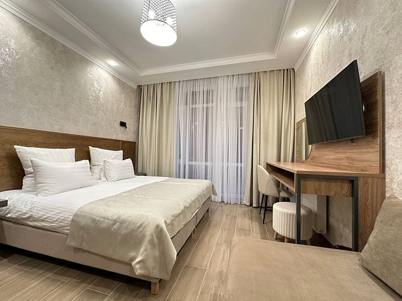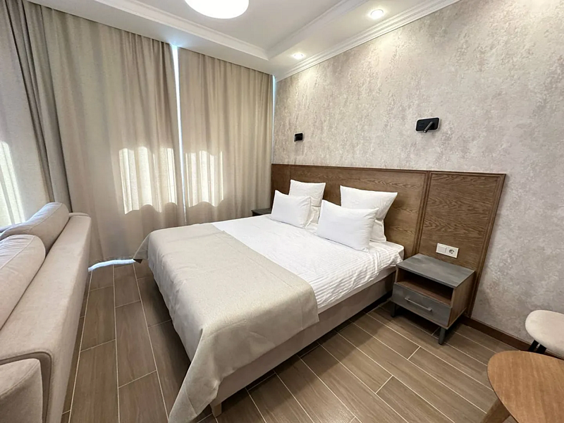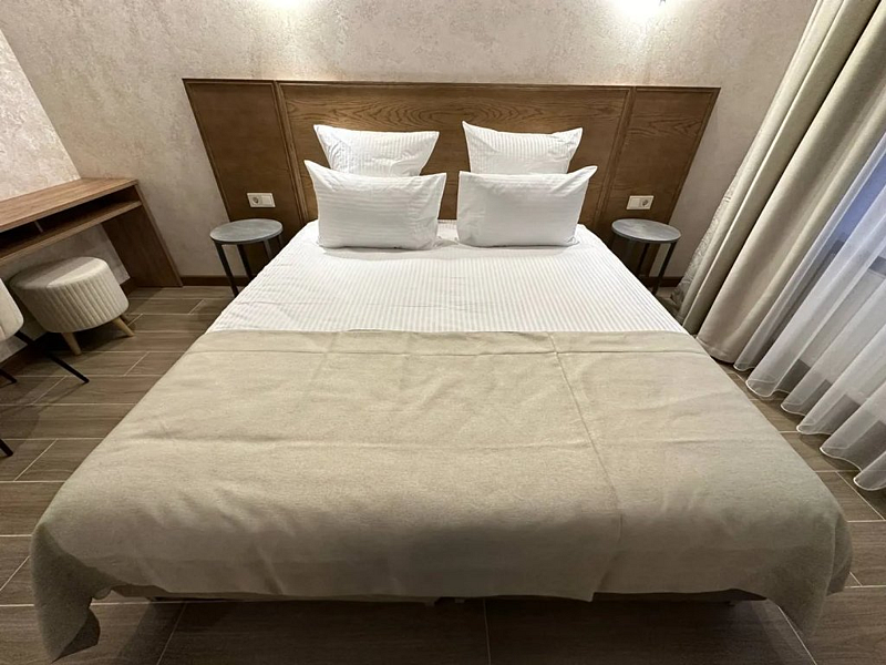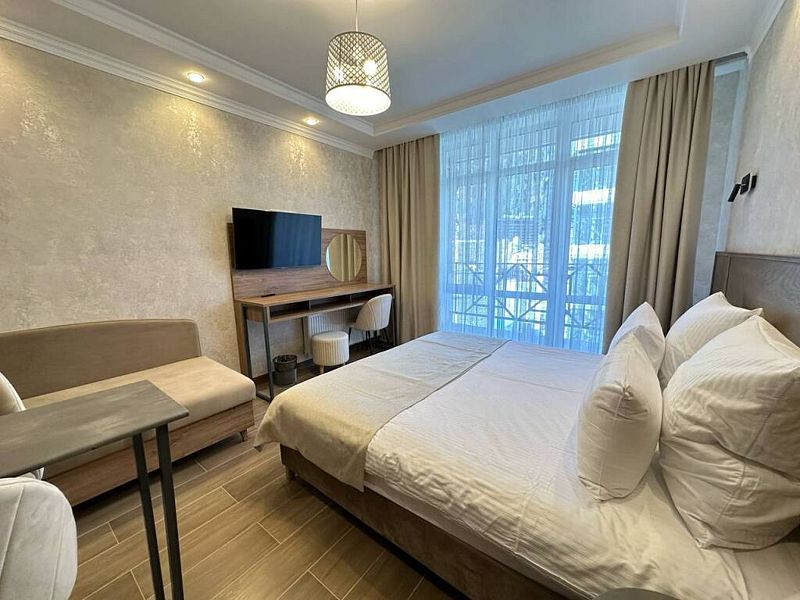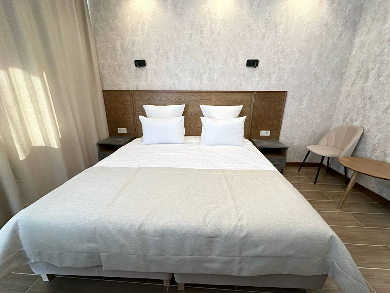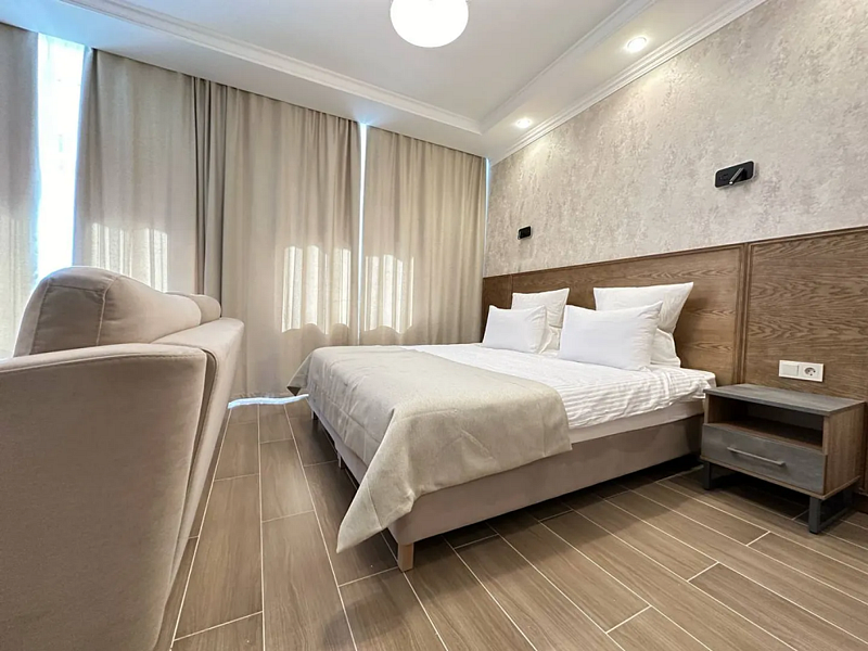 Номера категории «Стандарт» оформлены в элегантных нейтральных тонах и отличаются уютной атмосферой. В каждом номере предусмотрено объединённое пространство, включающее зону отдыха и обеденную зону, оснащённую столом и стульями. Также в каждом номере есть просторная кровать и удобный диван. Имеется балкон. Обратите внимание: фотоматериалы являются типовыми. Возможны различия в отделке и комплектации номеров одной категории.Услуги и удобства