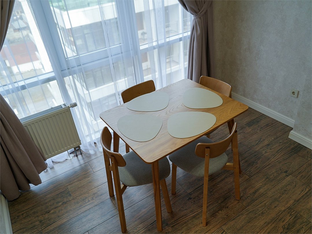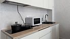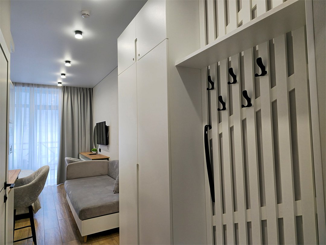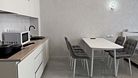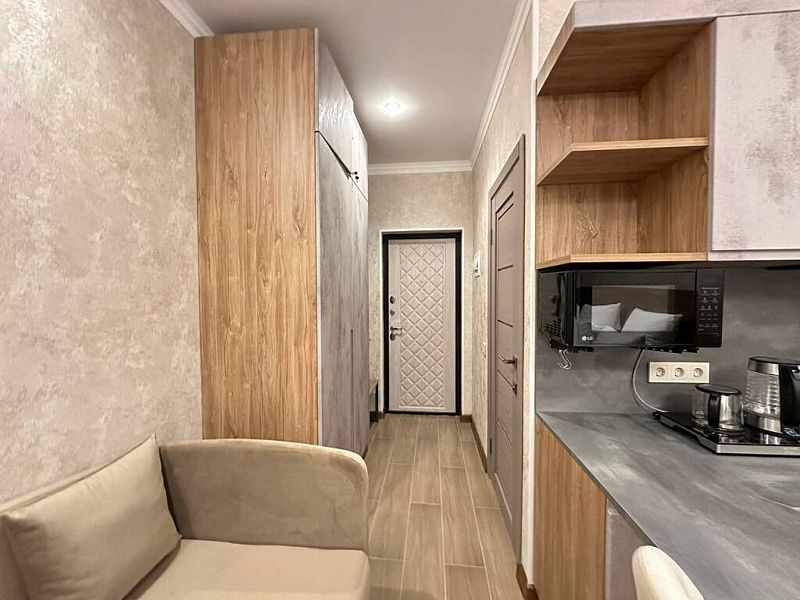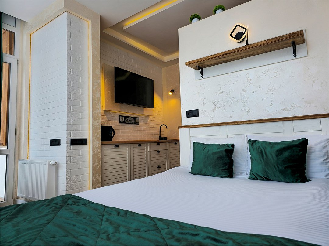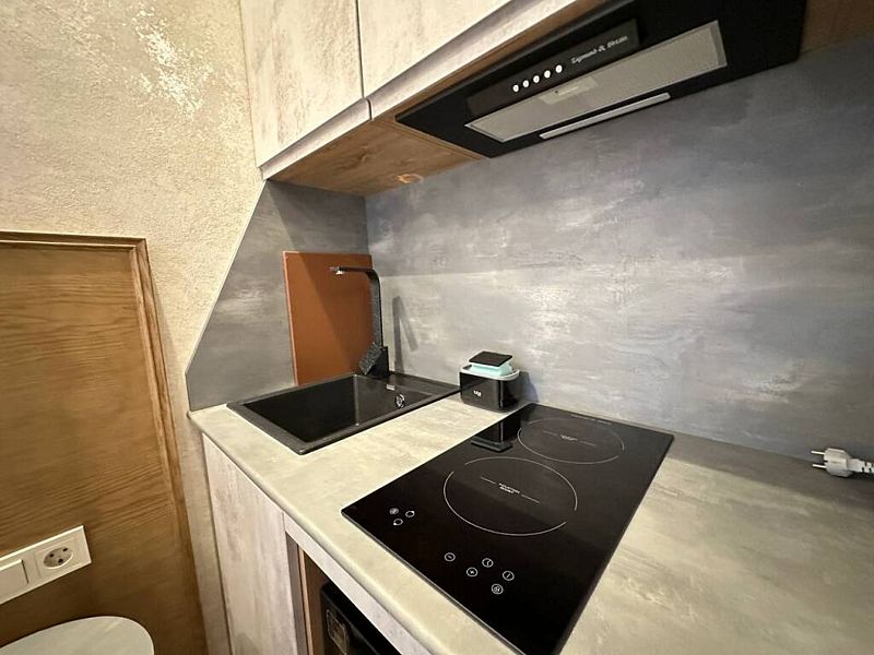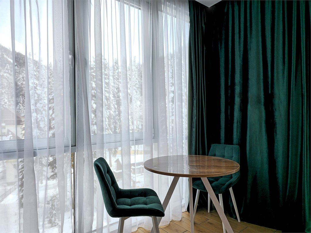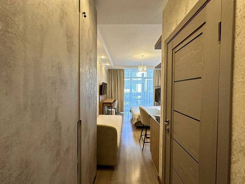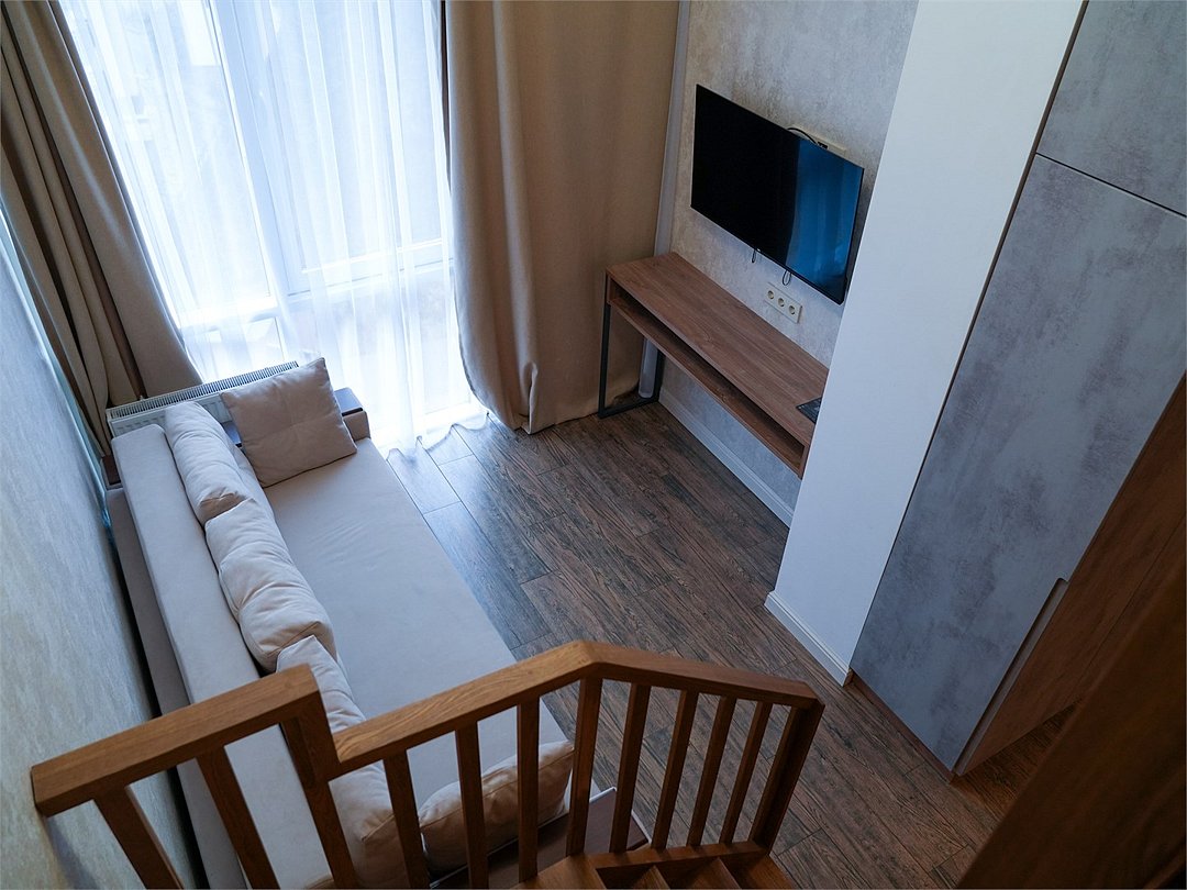 Номера категории «Студия комфорт» — это стильное и функциональное пространство, созданное для комфортного отдыха. В каждом номере предусмотрена просторная комната с удобной кроватью, а также зона отдыха с диваном и креслами. Кухонная зона оборудована всем необходимым для приготовления пищи, а в обеденной зоне можно с комфортом насладиться трапезой. Большие панорамные окна обеспечивают естественное освещение и открывают вид на окрестности. Обратите внимание: фотоматериалы являются типовыми. Возможны различия в отделке и комплектации номеров одной категории.Услуги и удобства