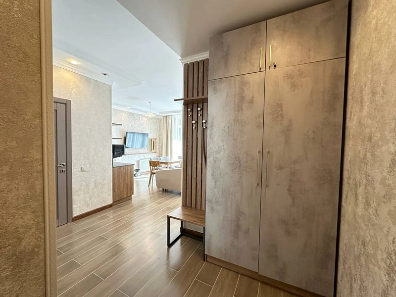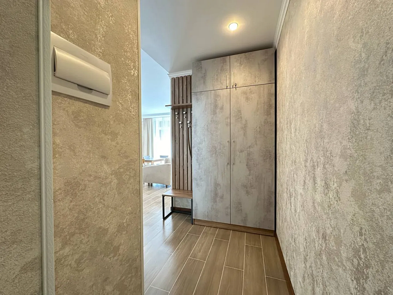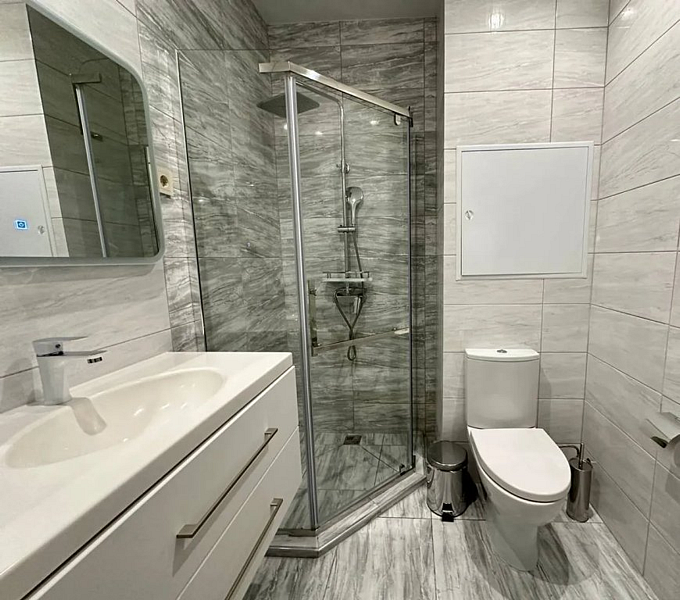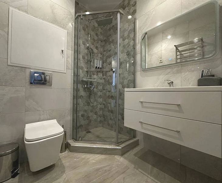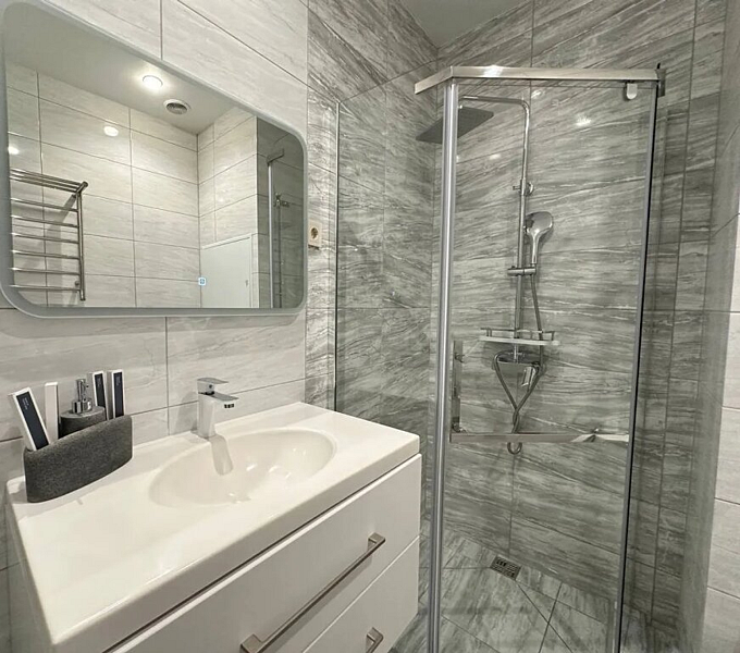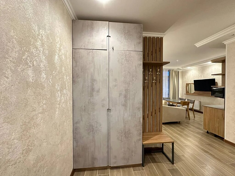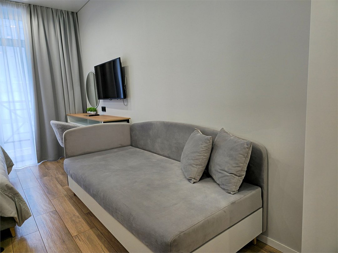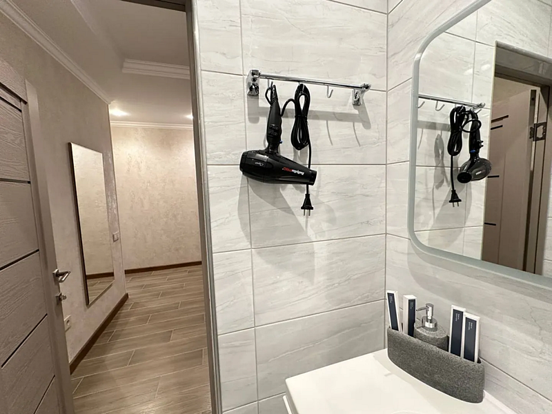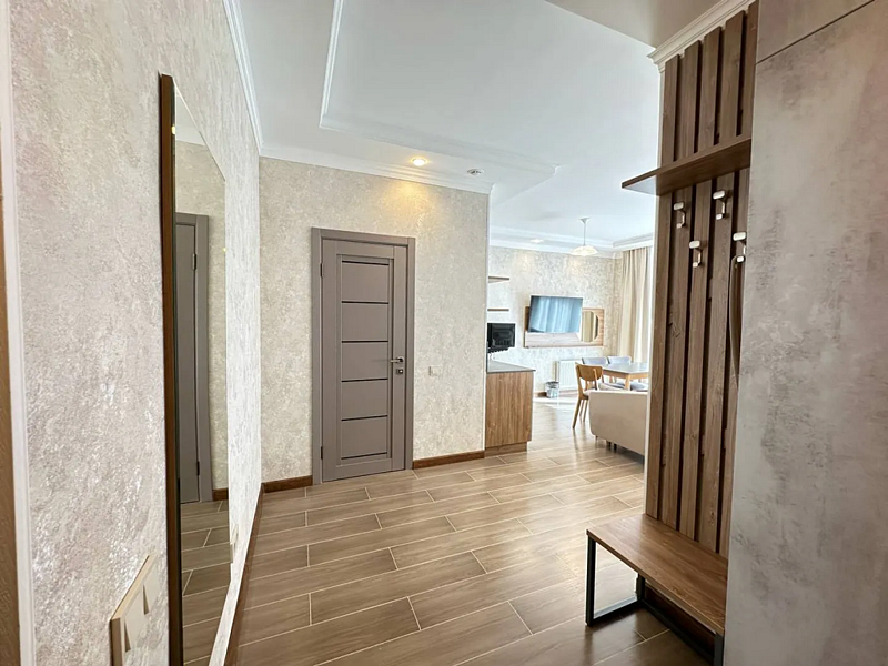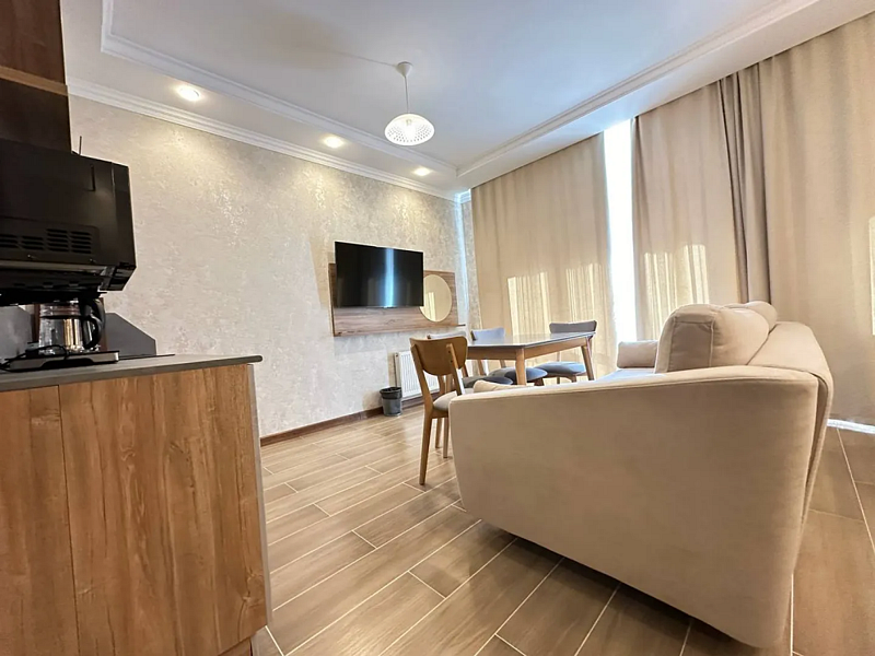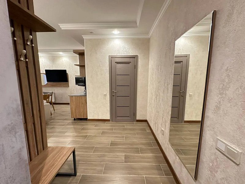 Номера категории "Стандарт комфорт+" — это стильное и уютное пространство в нейтральных тонах. Просторная кровать и удобный диван обеспечивают комфортный отдых, а функциональная кухня позволяет с удобством готовить. С балкона номера открывается живописный вид на горы. Номера категории "Стандарт комфорт" расположены на 4,5,7 этажах. Обратите внимание: фотоматериалы являются типовыми. Возможны различия в отделке и комплектации номеров одной категории.Услуги и удобства