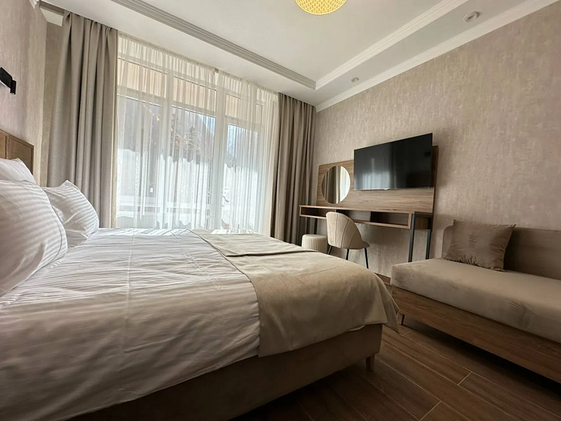 «Эконом» — практичные номера по доступной цене в апарт-отеле «Таукель» (Домбай): всё необходимое для комфортного отдыха после гор и прогулок. Важно: в соседних апартаментах сейчас проводятся ремонтные работы — в дневное время возможен шум и временные неудобства.Услуги и удобства