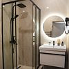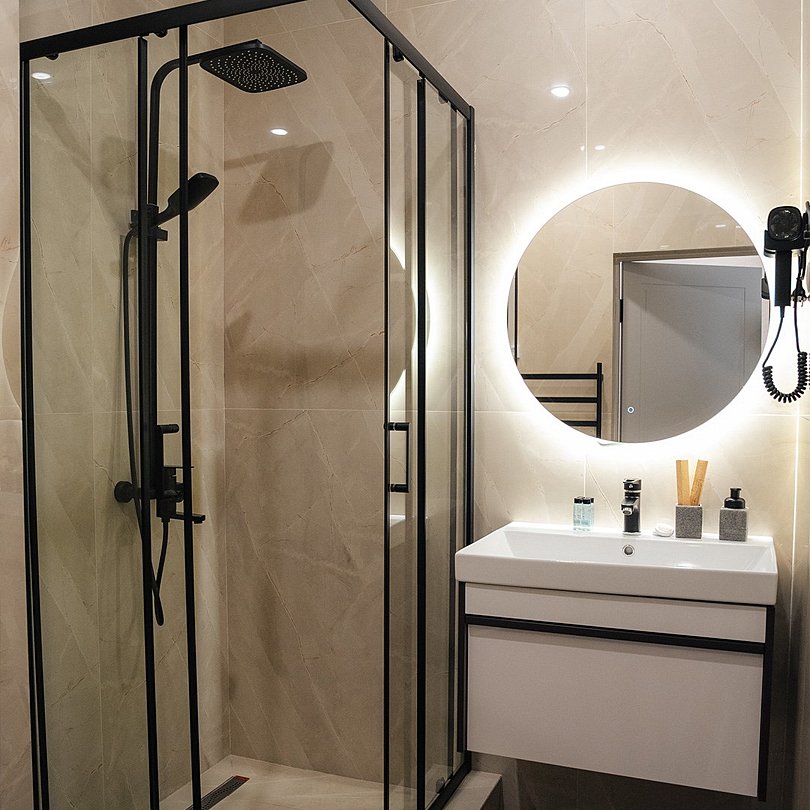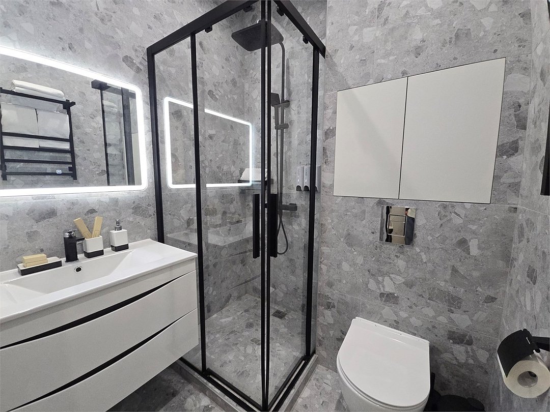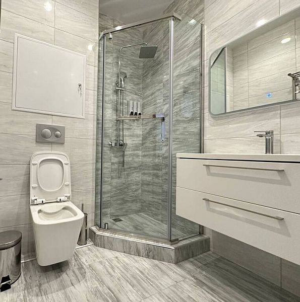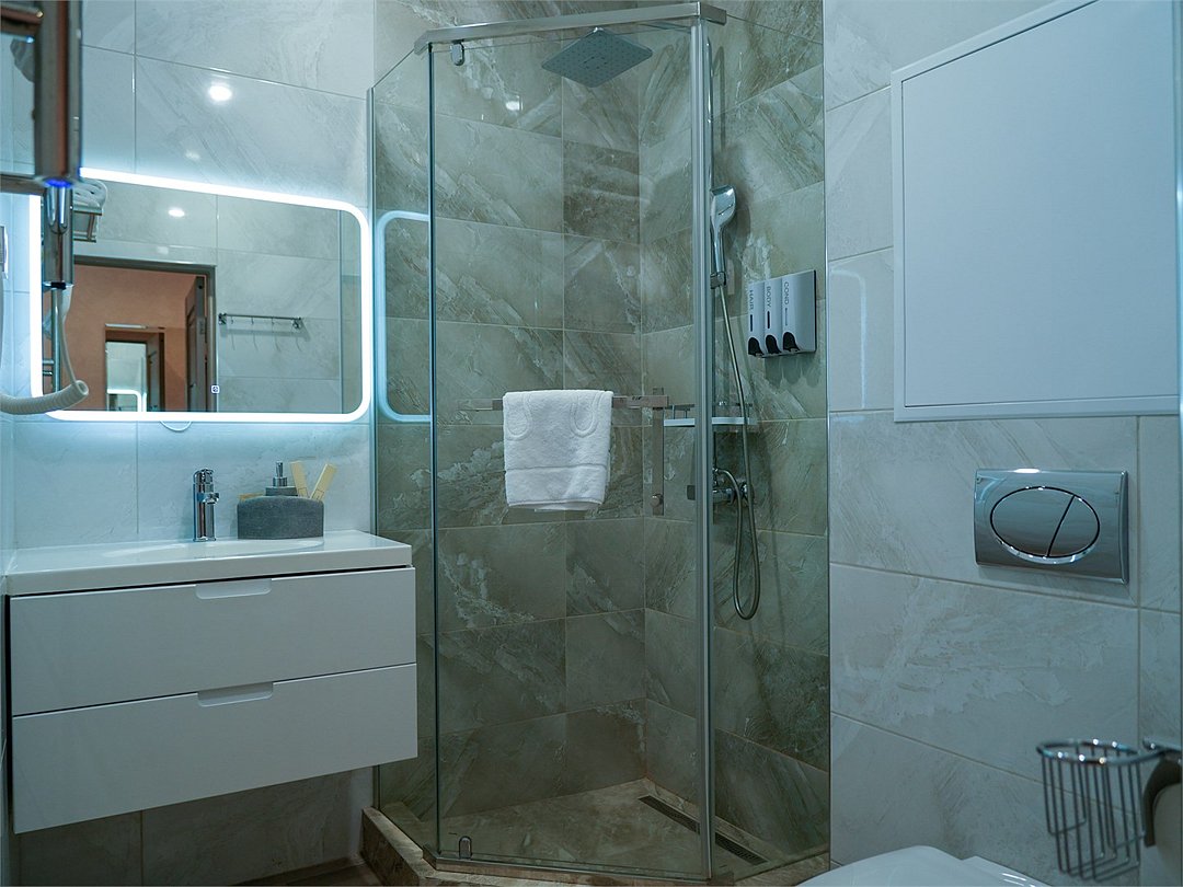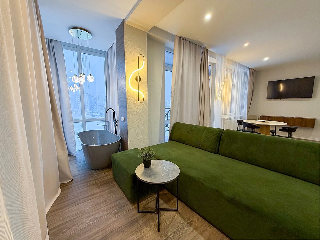 телевизор, кабельное телевидение, Wi-Fi, светильник, фен, плита для приготовления пищи, микроволновая печь, душевая кабина, санузел, теплый пол, халаты, банные полотенца, тапочки, косметические средства, балкон, двуспальная кровать, гладильная доска, диван, кресла, тумбы, стулья, шкаф для одежды, обеденный стол, зеркало, кухня, чайный набор, набор посуды, сейф, обеденная зона, гостиная зона, отопление, плиточное покрытие, высокие потолки, кухонная посуда, стаканы, кухонная утварь, столовые приборы, туалетный столик, тумба, мини-холодильник, теплые полы, номер для некурящих, пуфик, чайная станция, уборка номера, вешалки-плечики, окна от пола до потолка, прачечная (за дополнительную плату), дождевой и ручной душ, можно с питомцамиВ гостиничном номере