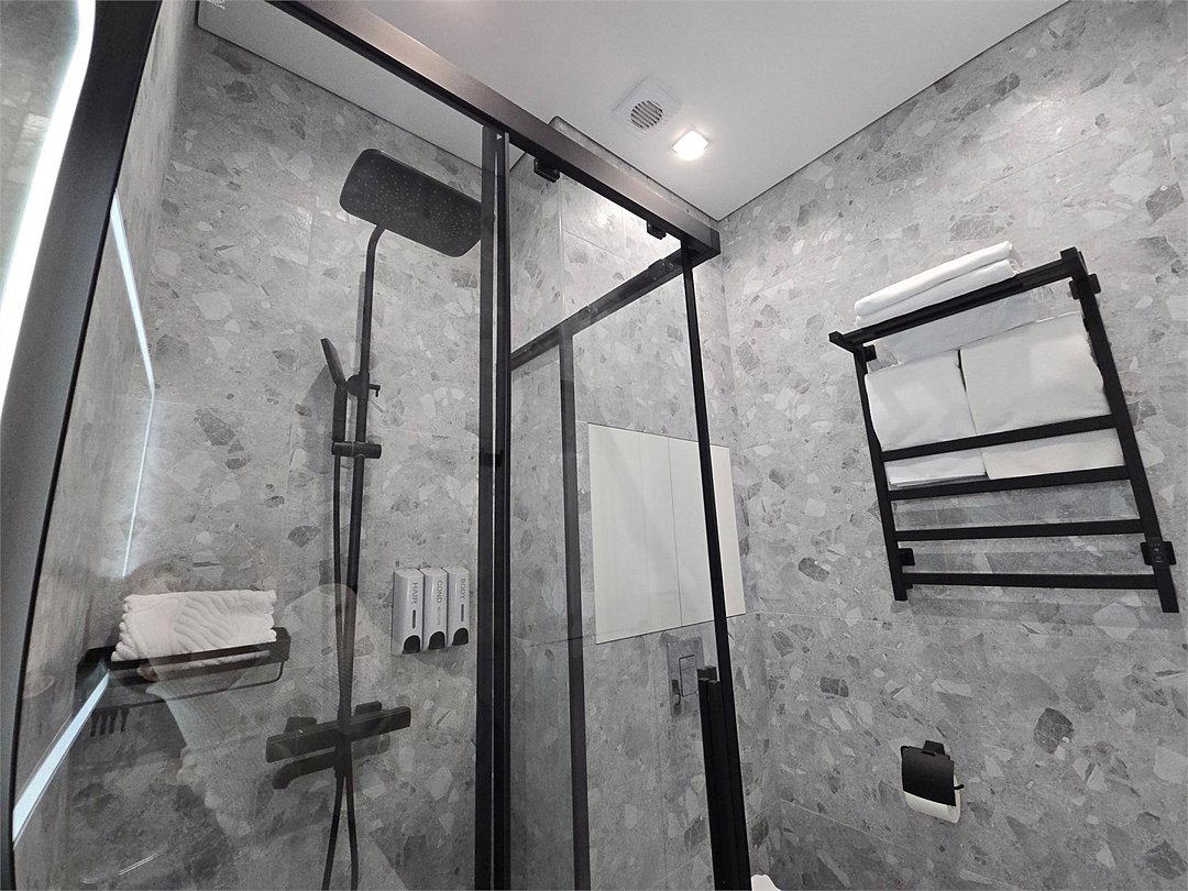 телевизор, кабельное телевидение, Wi-Fi, светильник, фен, микроволновая печь, ванная комната, душевая кабина, санузел, теплый пол, халаты, банные полотенца, тапочки, косметические средства, балкон, двуспальная кровать, диван, стулья, шкаф для одежды, обеденный стол, багажная тумба, зеркало, чайный набор, чайник, обеденная зона, отопление, душ, плиточное покрытие, стаканы, столовые приборы, стол, туалетный столик, теплые полы, номер для некурящих, уборка номера, вешалки-плечики, окна от пола до потолка, можно с питомцами, тропический душВ гостиничном номере