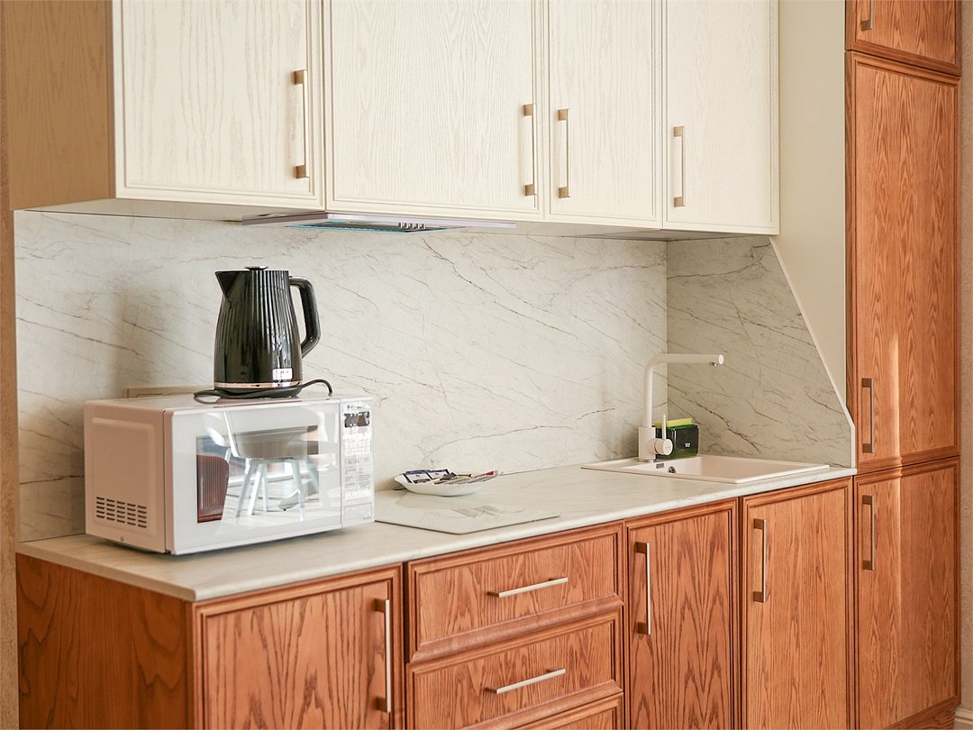 телевизор, кабельное телевидение, Wi-Fi, светильник, фен, микроволновая печь, обогреватель, душевая кабина, санузел, теплый пол, халаты, банные полотенца, тапочки, косметические средства, балкон, двуспальная кровать, диван, стулья, шкаф для одежды, багажная тумба, зеркало, комод, кухня, чайный набор, набор посуды, сейф, обеденная зона, гостиная зона, отопление, плиточное покрытие, кухонная посуда, кухонная утварь, мини-холодильник, теплые полы, чайная станция, вешалки-плечики, мыло, прачечная (за дополнительную плату), можно с питомцамиВ гостиничном номере