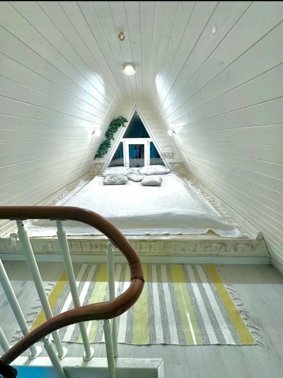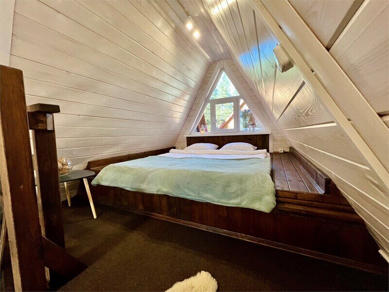 Уютный 2-х уровневый А-фрейм, вместимостью до 4-х гостей.