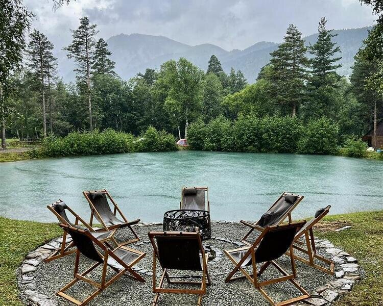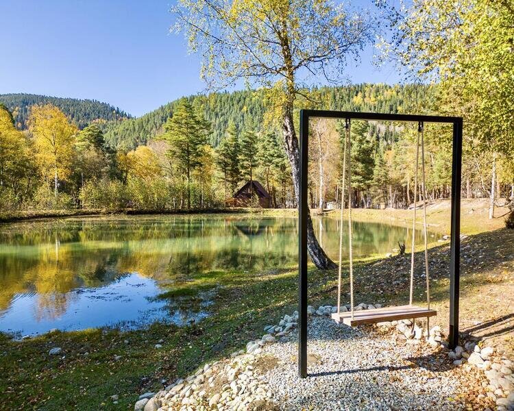 Семейный отдыхДостоинстваЗдесь мы провели чудесный отпуск, арендовали дом с баней. Баня что надо, а после неё можно окунуться в природную купель прямо у ручья. С утра из каждого окна открывается красивый вид – на горы или ручей. За забором пасутся кони и коровы с колокольчиками на шее, атмосфера настоящей сельской идиллии. Персонал очень отзывчивый, любые вопросы решаются мгновенно. На территории есть площадки для футбола и волейбола. Просыпаться под пение птиц и наблюдать за белками, прыгающими по деревьям - настоящее удовольствие. Всем советую посетить это прекрасное место!