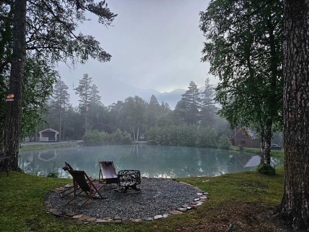 В комплексе также есть небольшое кафе, где можно насладиться комплексными завтраками и вкусными блюдами национальной кухни из натуральных, экологически чистых продуктов местных фермеров. В тёплое время года гости проводят много времени на улице, играют в мини-футбол и волейбол, готовят шашлыки у озера и охлаждаются в горной водичке. Для детей предусмотрены качели, горка и батут.