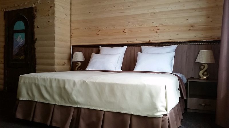 Отель удачно расположился на правом берегу реки Аманауз среди вековых сосен и елей и отсюда открываются потрясающие виды на Пик Безымянный, Суфруджу, Белалакая и само ущелье Аманауз.