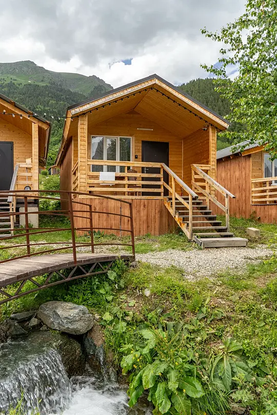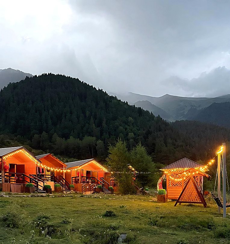 Вдыхайте чистый горный воздух, посетите баню, отправляйтесь на конные прогулки или просто отдохните на качелях, наслаждаясь роскошным видом на горы и лес. А уникальные кавказские завтраки приятно удивят вас своим вкусом.