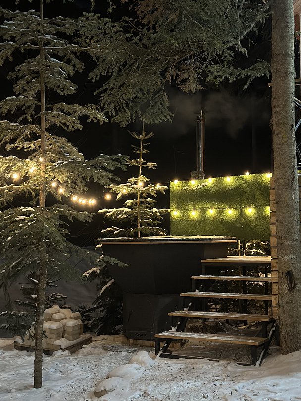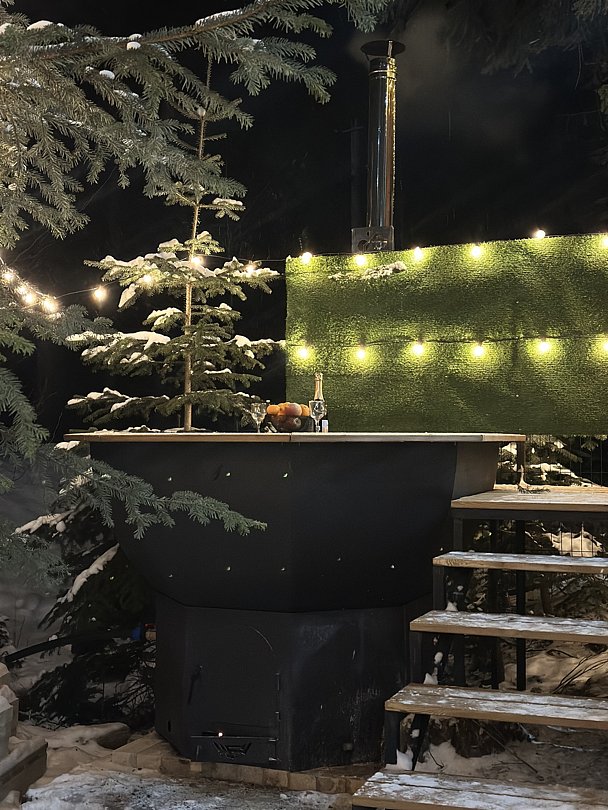 Огромный деревянный чан, нагреваемый на открытом огне, ждет вас в любой сезон.
