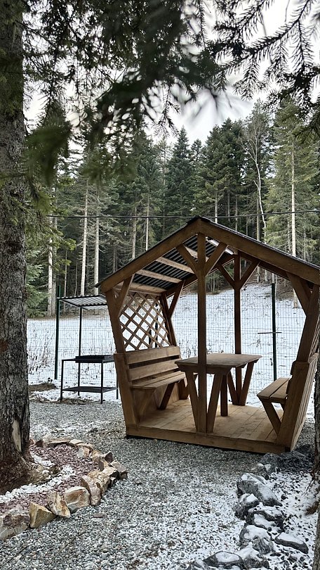 Все дома с видом на горы и лес полностью оборудованы для комфортного отдыха и включают кухню, оснащенную бытовой техникой и набором посуды, удобные спальные места с чистым постельным бельем, современный санузел с душем, Smart-TV и Wi-Fi, террасу с садовой мебелью.