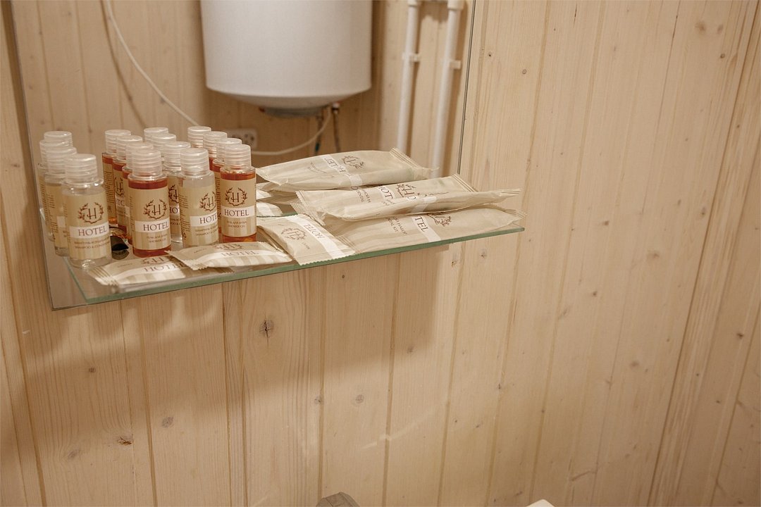 Инфраструктура: тапочки, зона отдыха, полотенца, шапочки, душБаня на дровах