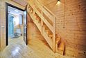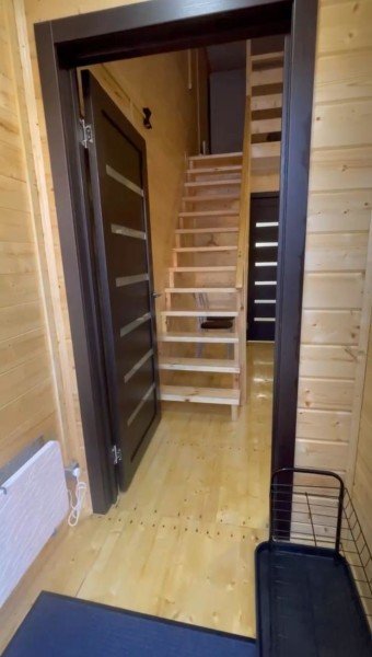 На первом этаже дома расположены: прихожая, кухня, комфортный диван для большой компании, санузел с душевой кабиной.