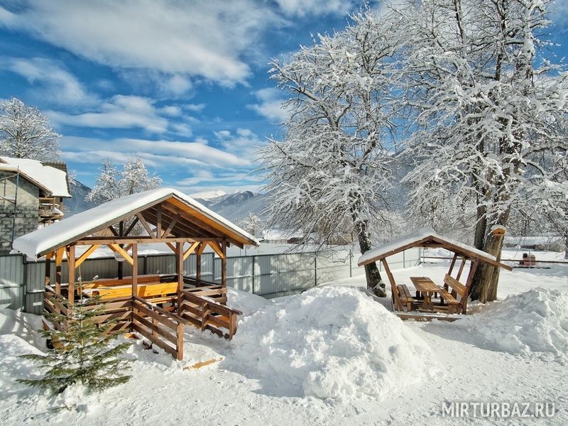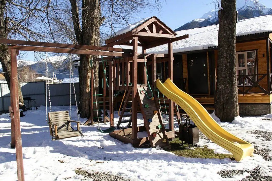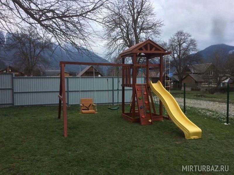 В распоряжении гостей баня на дровах с сибирским чаном, обустроенная мангальная зона, уютные беседки с видом на горы. Дети могут развлекаться на детской площадке во дворе. Горный ручей, протекающий на территории гостевого дома, создает уютную и расслабляющую атмосферу.