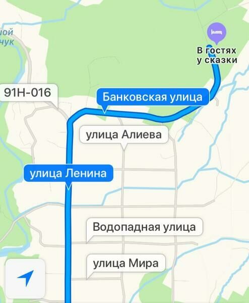 В п. Архыз по улице Ленина доехать до поворота на улицу Банковская. Свернуть на улицу Банковская. По улице Банковской вверх до Горной Лаванды. На Горной Лаванде повернуть налево, через 200 м. с правой стороны б/о «В гостях у Сказки».