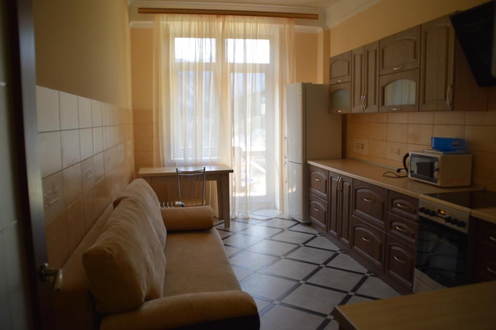 Просторные светлые апартаменты с балконом и кухней.