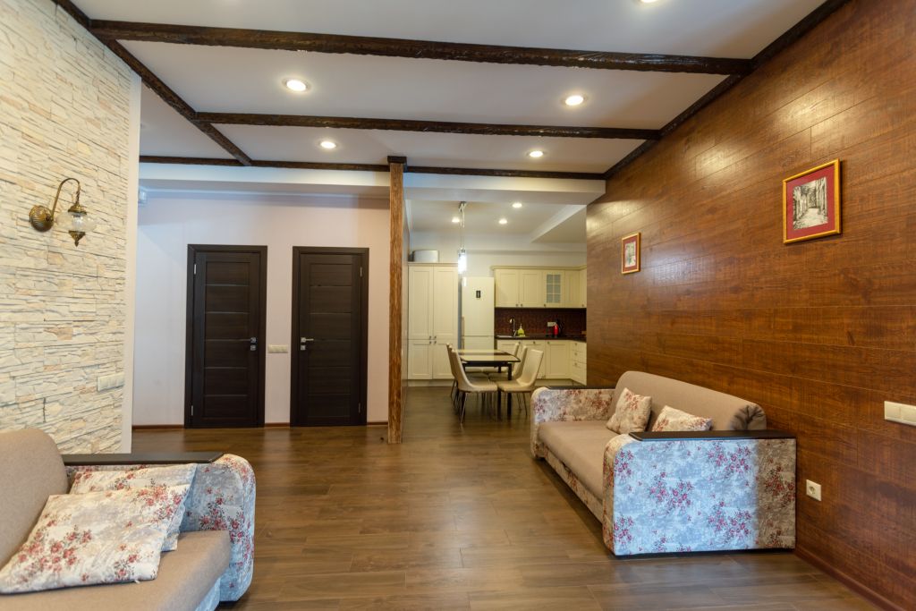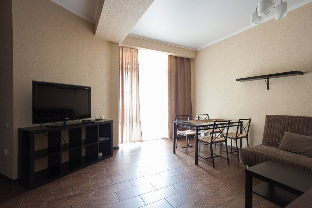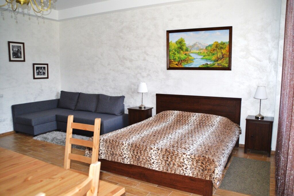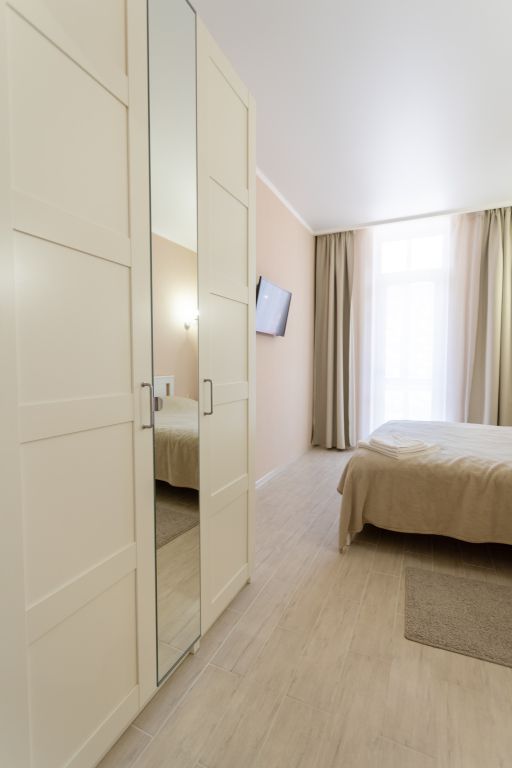 Апартаменты выдержаны в классическом стиле и выполнены в светлых тонах. В каждом из номеров находится необходимая мебель, телевизор и ванная комната.