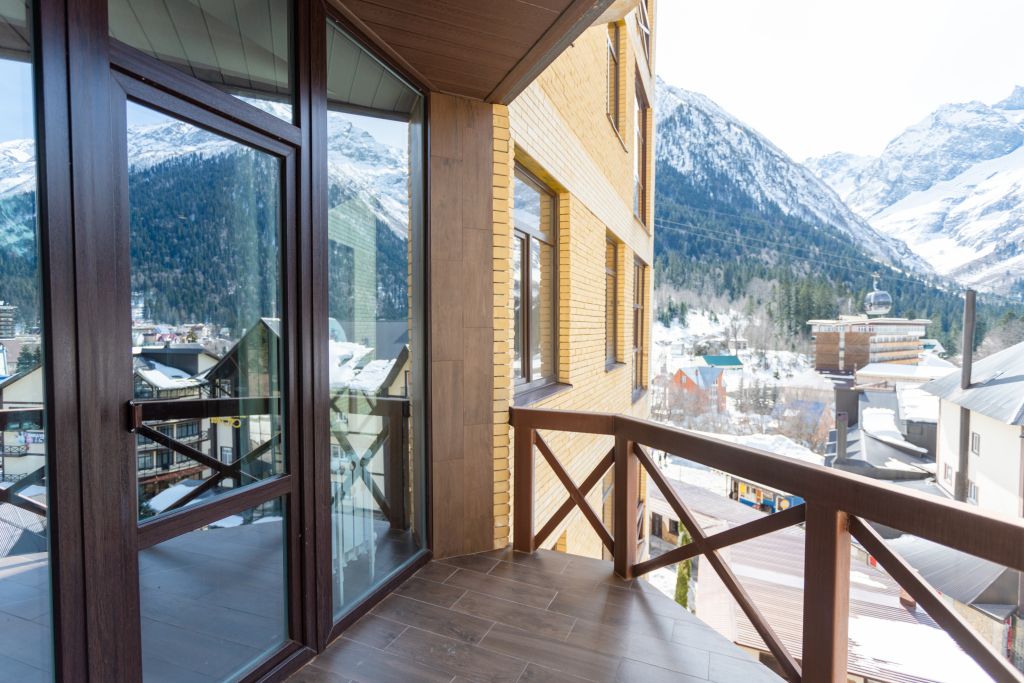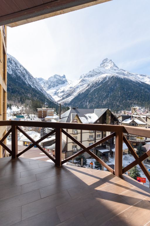 Просторные апартаменты с стильным интерьером и шикарным видом на горы.