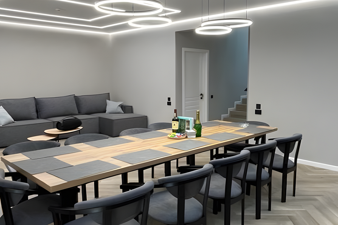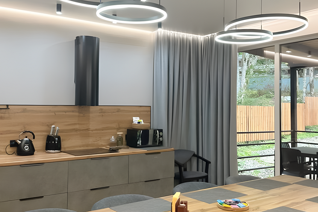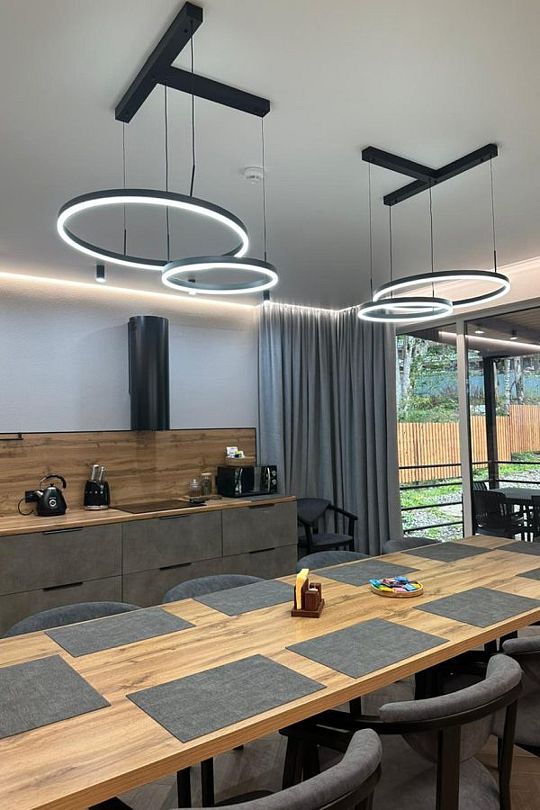 Гостевой дом «Вилла Елена» — это идеальное место для проживания, где уют и комфорт становятся основными акцентами. Просторная гостиная и кухня, продуманные для крупных компаний, приветствуют гостей большим обеденным столом, расположенным у панорамных окон, что позволяет наслаждаться потрясающими видами на горные пейзажи даже во время еды. Здесь каждый сможет найти уголок для отдыха, от большого дивана до удобных кресел, создавая атмосферу, которую по-настоящему хочется назвать домом.