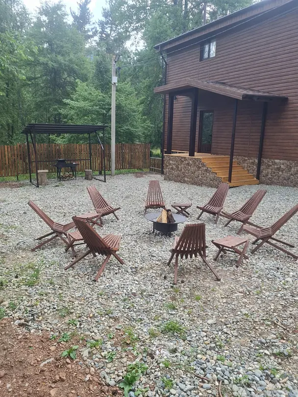 Количество спальных мест с учетом диванов составляет 12+ человек. Рядом с домом есть мангальная зона со всем необходимым и лобби-зона для приятного отдыха.