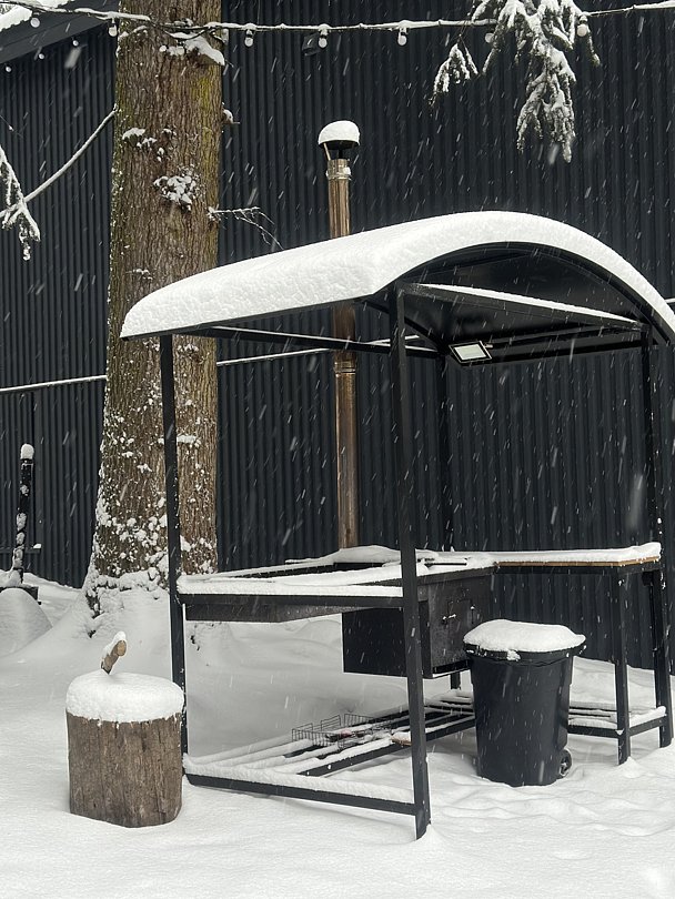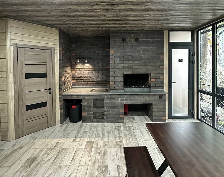 Теплая мангальная комната полностью оборудована всем необходимым для приготовления блюд — здесь вы с наслаждением можете прекрасно провести время в компании друзей и близких.