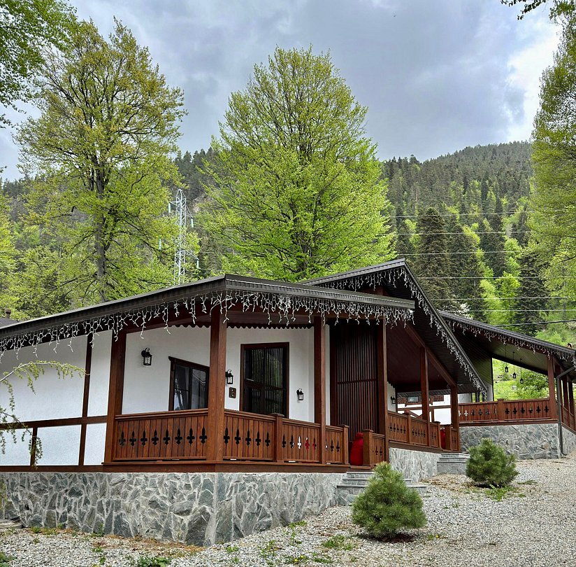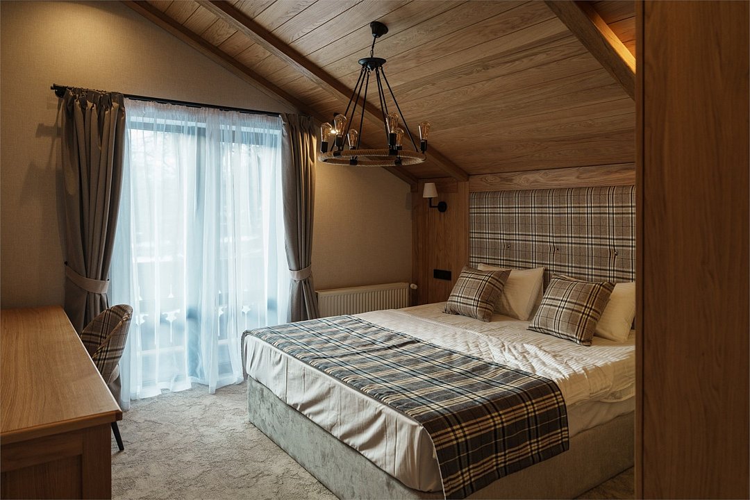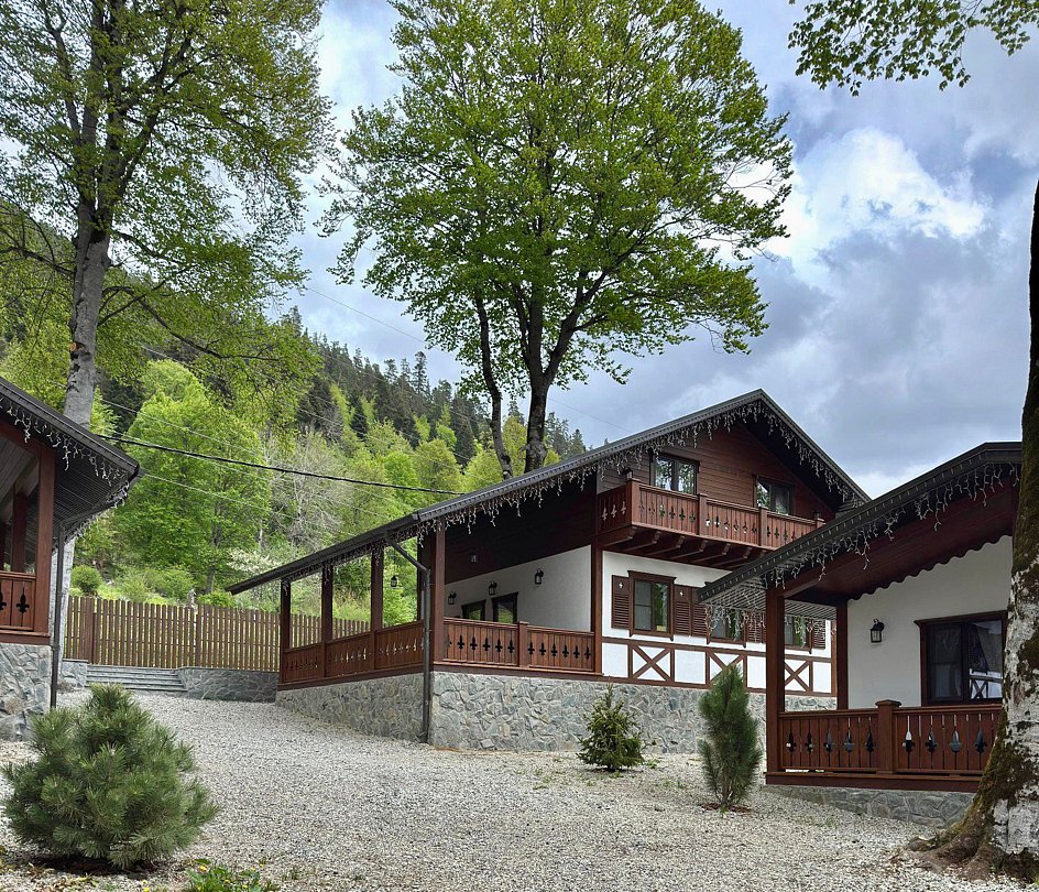 Комплекс состоит из 8 одноэтажных или двухэтажных шале с видом на горы, рассчитанных до 9 человек. В домах предусмотрены оборудованные кухни, обеденные и рабочие зоны, ванные с душевыми, удобные кровати с ортопедическими матрасами, телевизоры. Детская кроватка –– по запросу. Большие окна позволяют насладиться прекрасным видом на горы и лес.