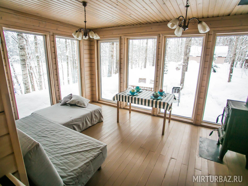 Дополнительно организуемые зимние забавы - прорубь, подледный лов , лыжи, коньки. Отдых в Карелии покажется вам по настоящему не забываемым.