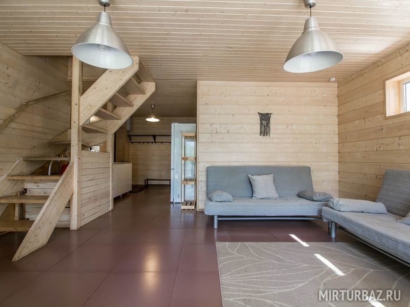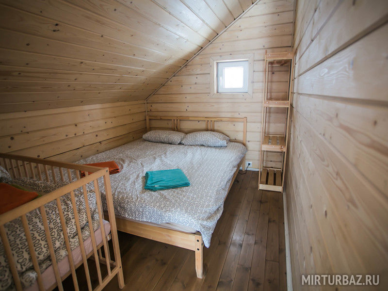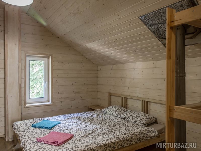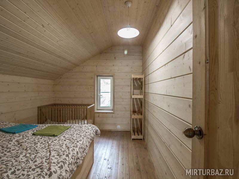 На втором этаже расположены 2 отдельные спальни с полноценными спальными местами на 4 человек, а так же общая комната с дополнительно организуемыми 2 спальными местами.