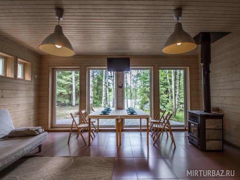 Новые коттеджи 2014 г. Постройки выполнены в скандинавском стиле и оборудованы сауной и всей необходимой техникой, и обставлены современной дизайнерской мебелью. Панорамное остекление коттеджей позволит насладиться видами уже за завтраком, и встретить закат у воды всей семьей в не зависимости от погоды.